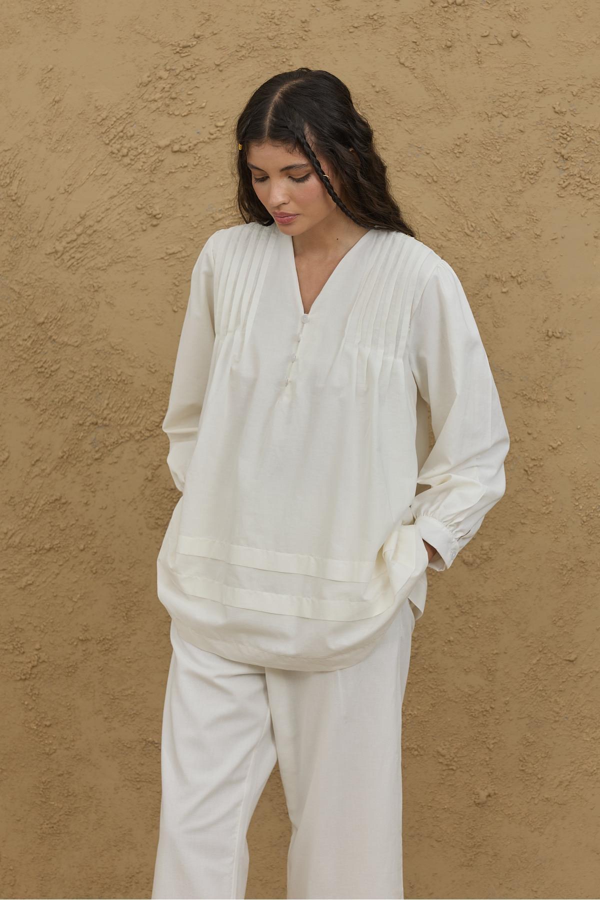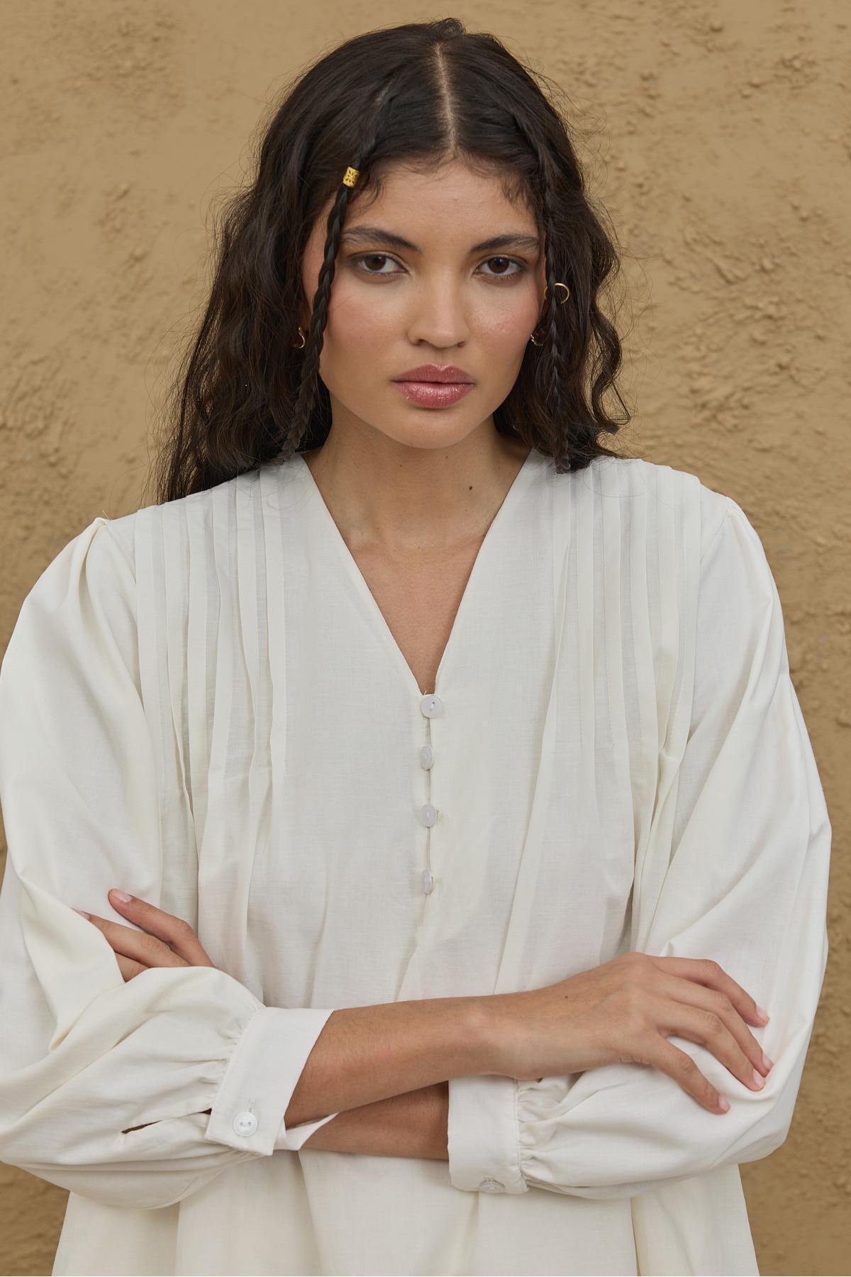 Nervürlü Gömlek Ekru Nervürlü Gömlek Ekru FHR25IY3200067 36-38
