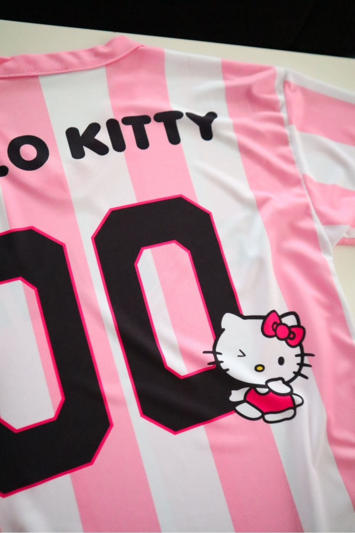 Pembe Beyaz V Yaka Çubuklu Jersey Kitty T-Shirt Pembe Beyaz V Yaka Çubuklu Jersey Kitty T-Shirt TOUZCİZGİLİFORM XL