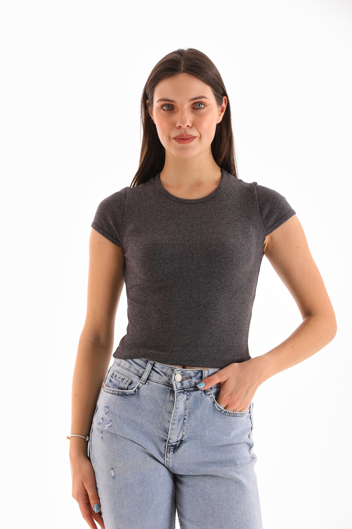 Kadın Bisiklet Yaka Kolsuz Crop Örme Bluz Kadın Bisiklet Yaka Kolsuz Crop Örme Bluz ÖZ PAMUK KOLSUZ-01 L