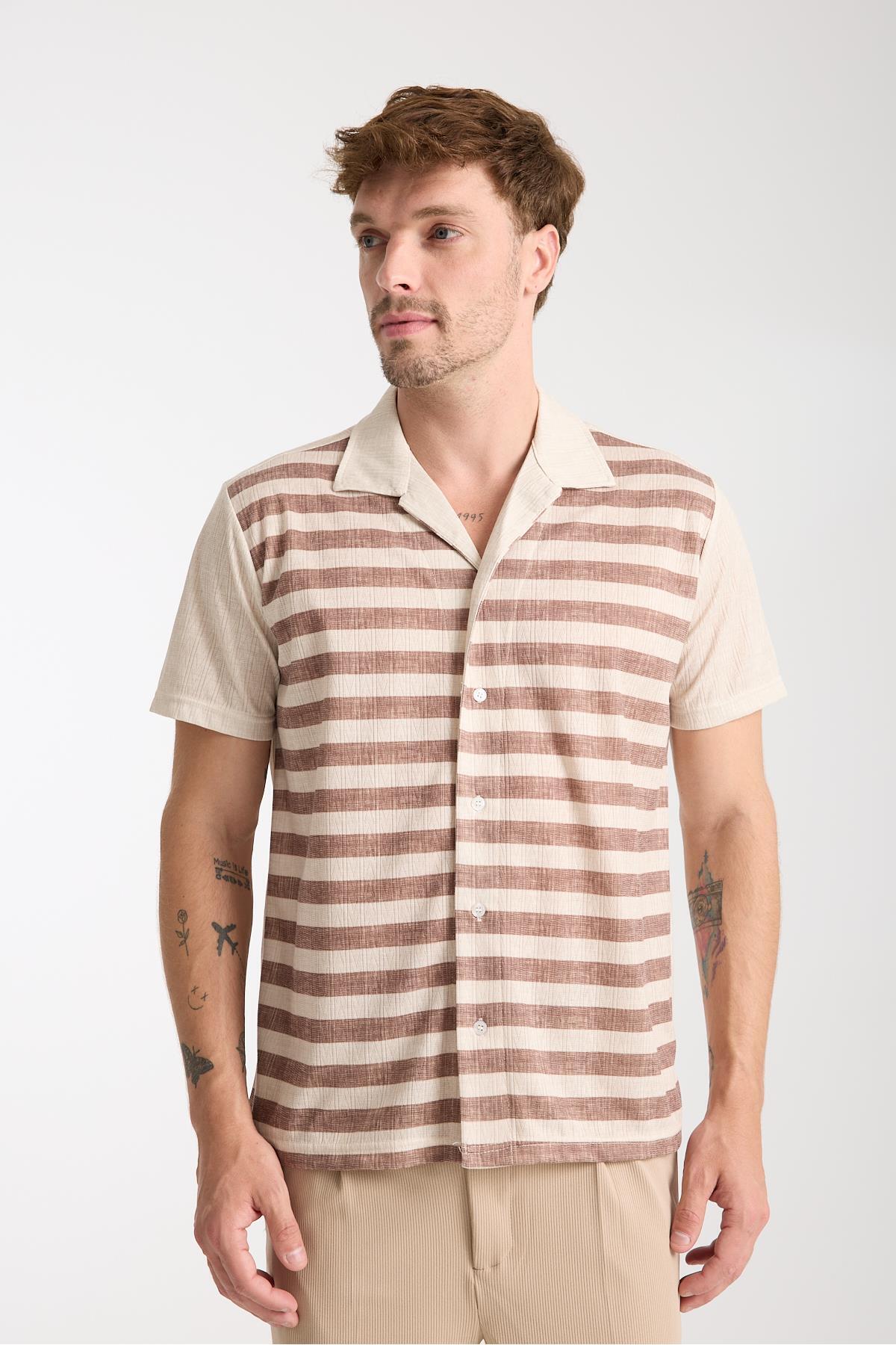 Kahverengi Beyaz Çizgili Erkek Kısa Kollu Yazlık Gömlek – Düğmeli, Açık Yaka, Rahat Kalıp Kahverengi Beyaz Çizgili Erkek Kısa Kollu Yazlık Gömlek – Düğmeli, Açık Yaka, Rahat Kalıp AFRIGM1 2XL