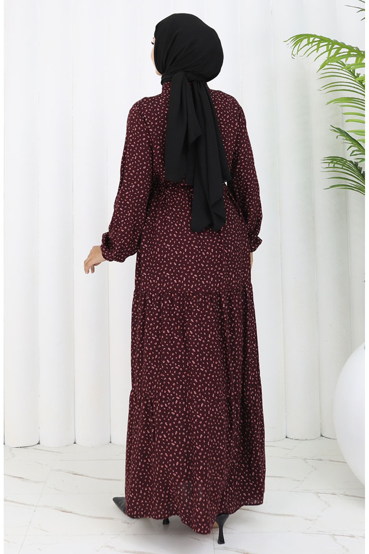 Viskon Kumaş Yarım Düğmeli Desenli Elbise 0068-04 Kahverengi Viskon Kumaş Yarım Düğmeli Desenli Elbise 0068-04 Kahverengi YNAZRA0068-04 50-52