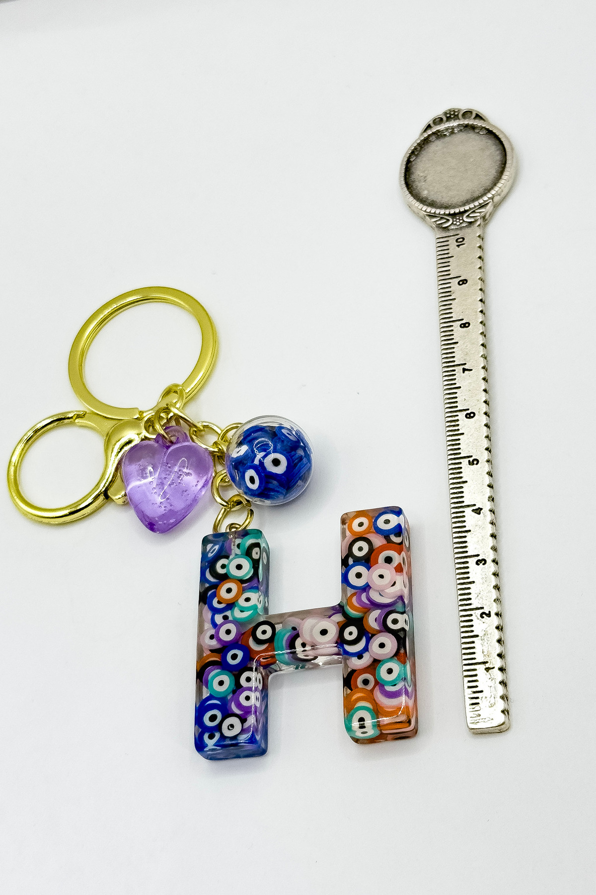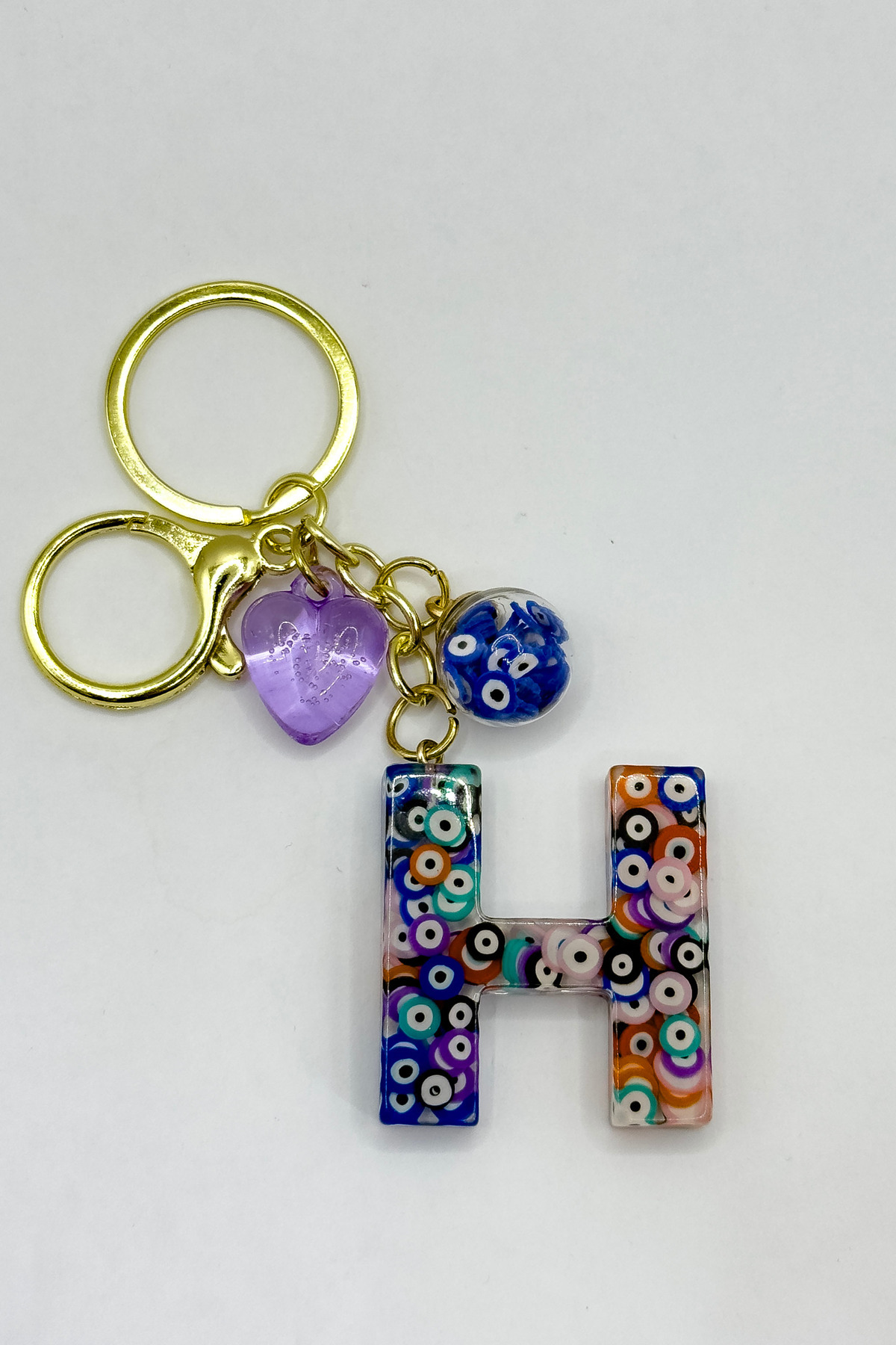 Renkli Nazar Boncuklu H Harfi Anahtarlık, El Yapımı Hediyelik Çanta Süsü Renkli Nazar Boncuklu H Harfi Anahtarlık, El Yapımı Hediyelik Çanta Süsü EN05028 تک سایز