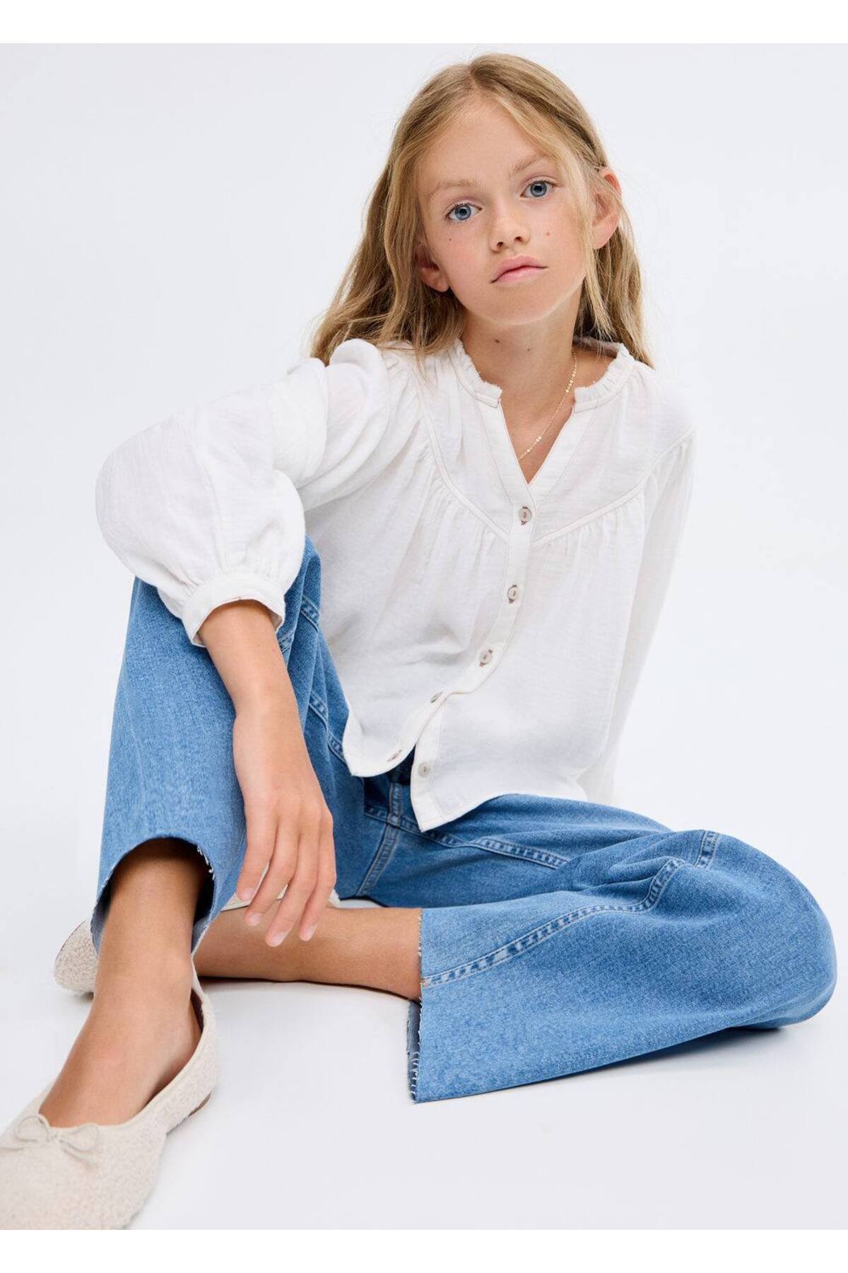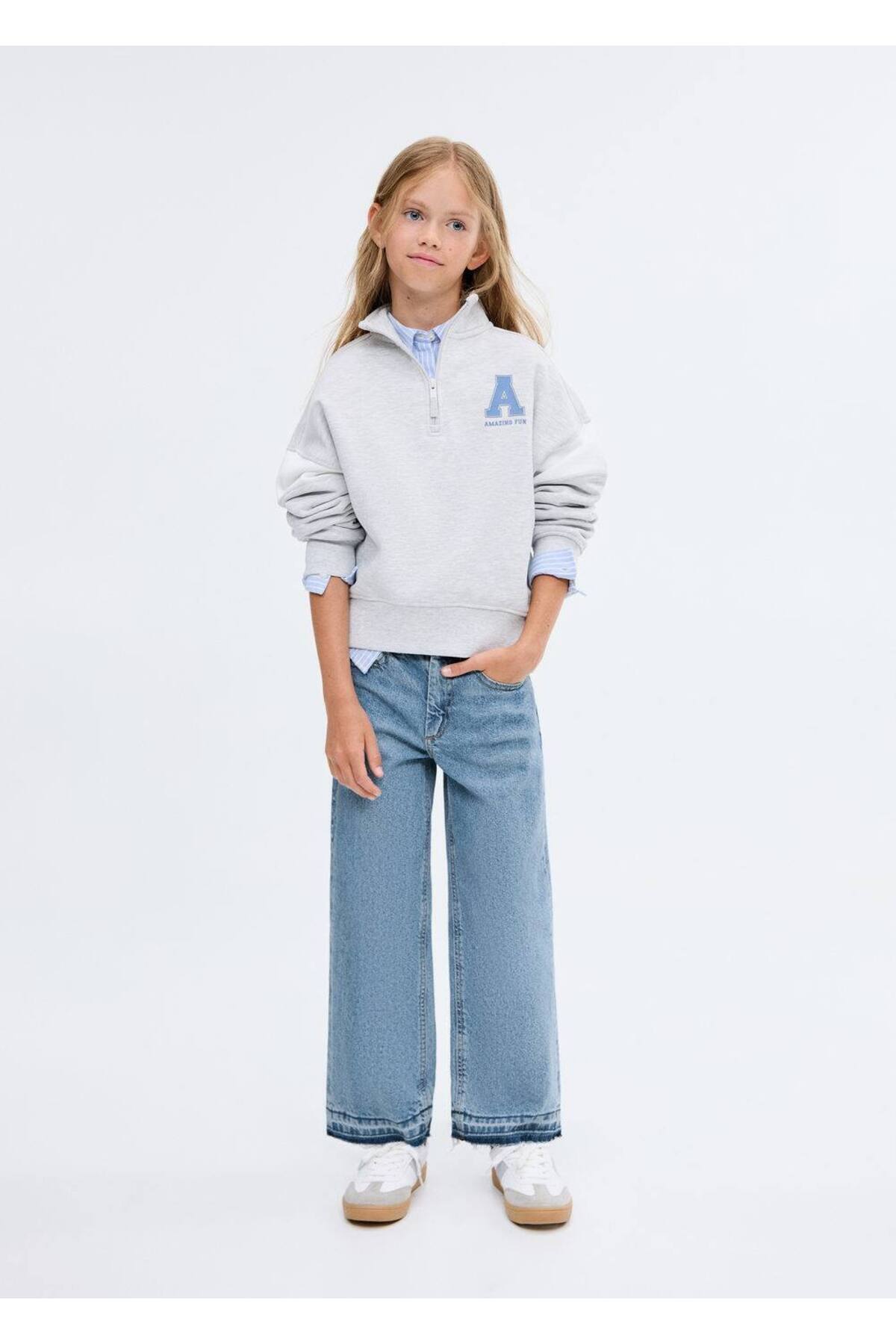 Yıpranmış paçalı wideleg jean Yıpranmış paçalı wideleg jean 17021247 13-14 Yaş