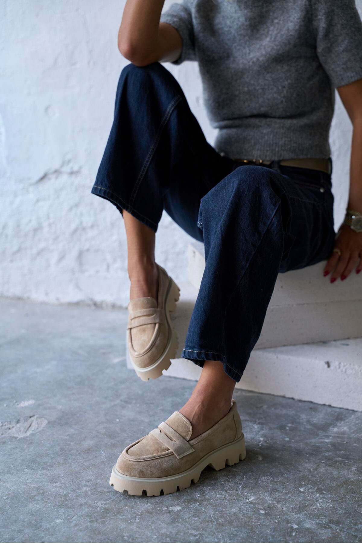 Kadın Süet Deri Bej Tokalı Klasik Loafer Kadın Süet Deri Bej Tokalı Klasik Loafer 01AYH309590A 41