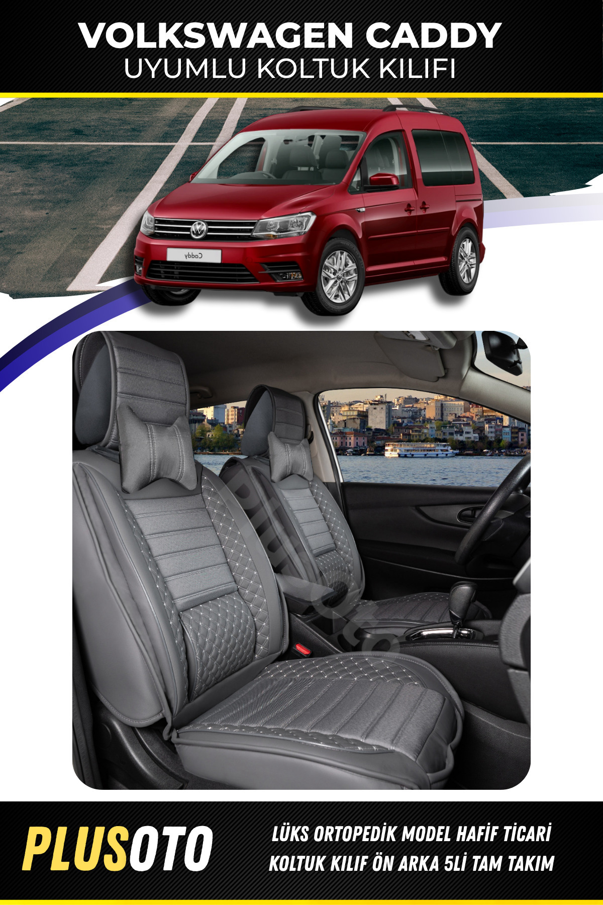 Volkswagen Caddy Uyumlu Plus Lux Serisi Gri Oto Koltuk Kılıfı 5li Takım Set P-799 Volkswagen Caddy Uyumlu Plus Lux Serisi Gri Oto Koltuk Kılıfı 5li Takım Set P-799 CTPLS-00107 تک سایز