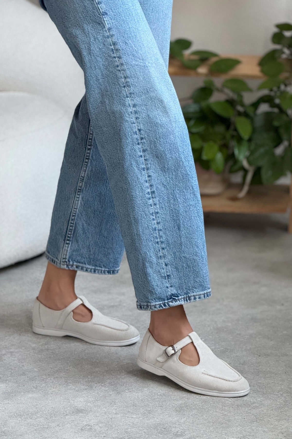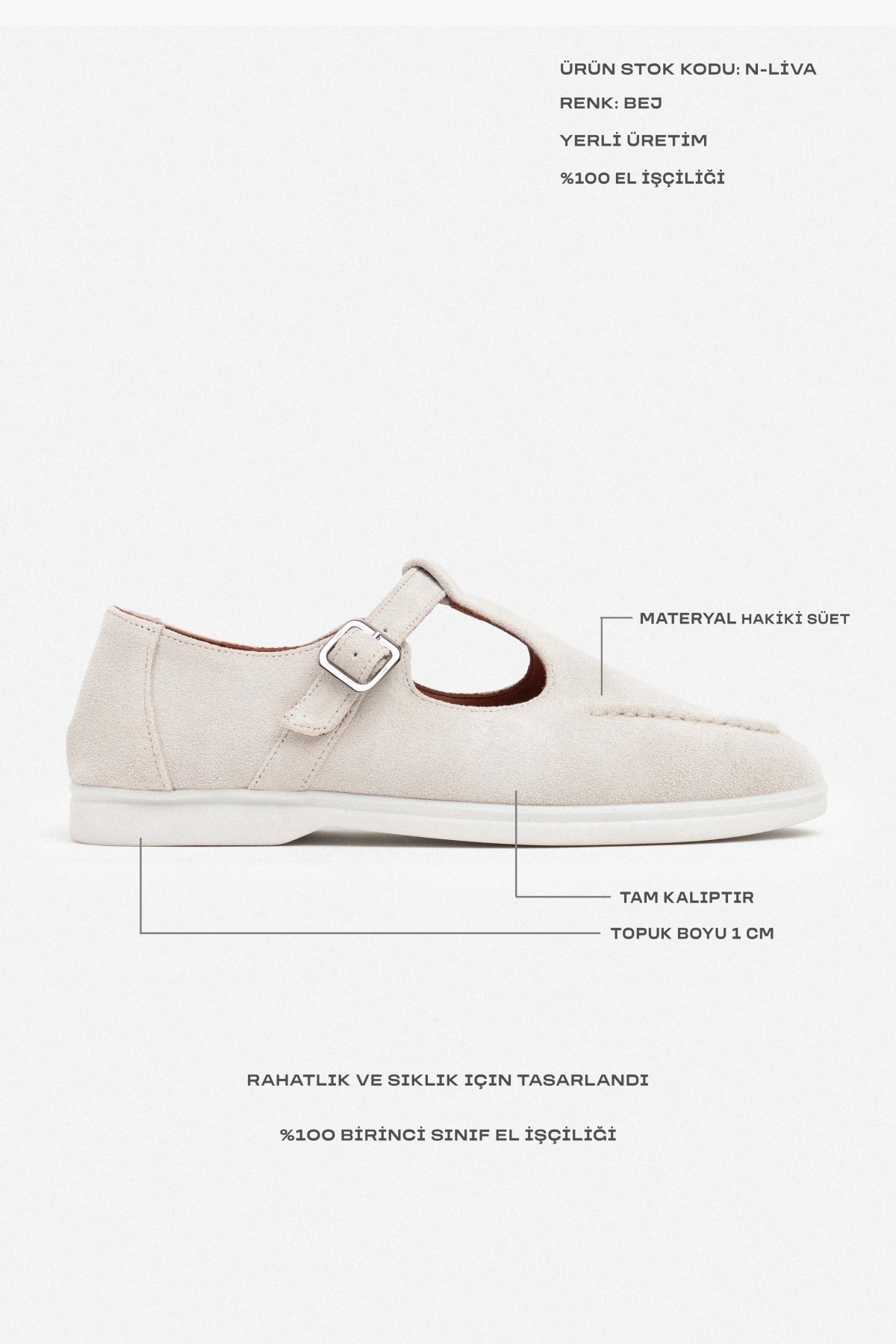 Liva Bej Hakiki Süet Deri Düz Taban Kemer Detay Günlük Kadın Ayakkabı Liva Bej Hakiki Süet Deri Düz Taban Kemer Detay Günlük Kadın Ayakkabı NSN-HM44K 40