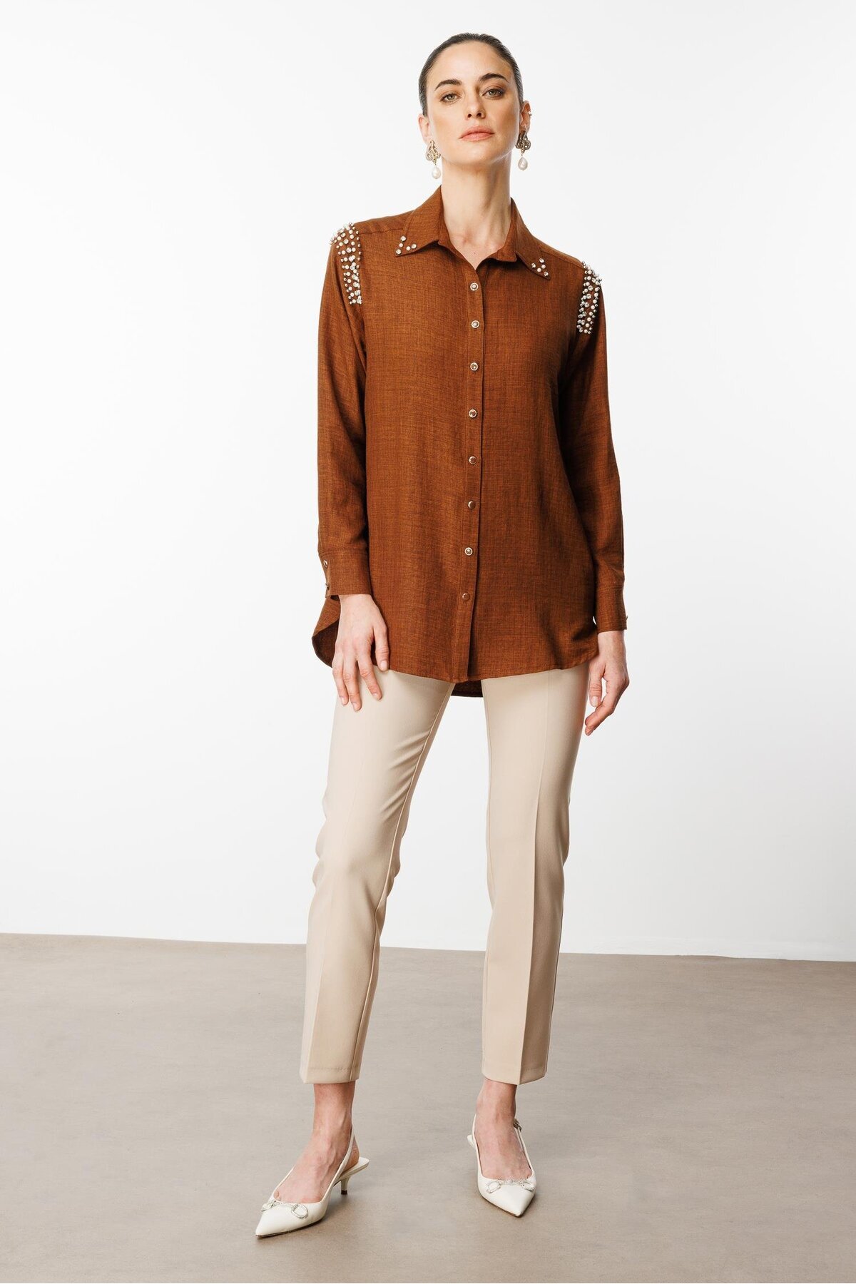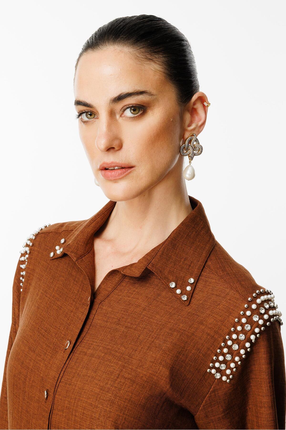 Modailgi Omuzları İşlemeli Rahat Kesim Gömlek Kahve Modailgi Omuzları İşlemeli Rahat Kesim Gömlek Kahve ILG241GMK01556 4