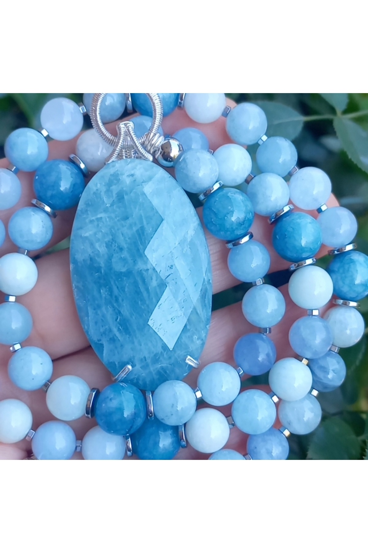 2288 Akuamarin Apatit el yapımı düğümlü kolye 2288 Akuamarin Apatit el yapımı düğümlü kolye 50 cm