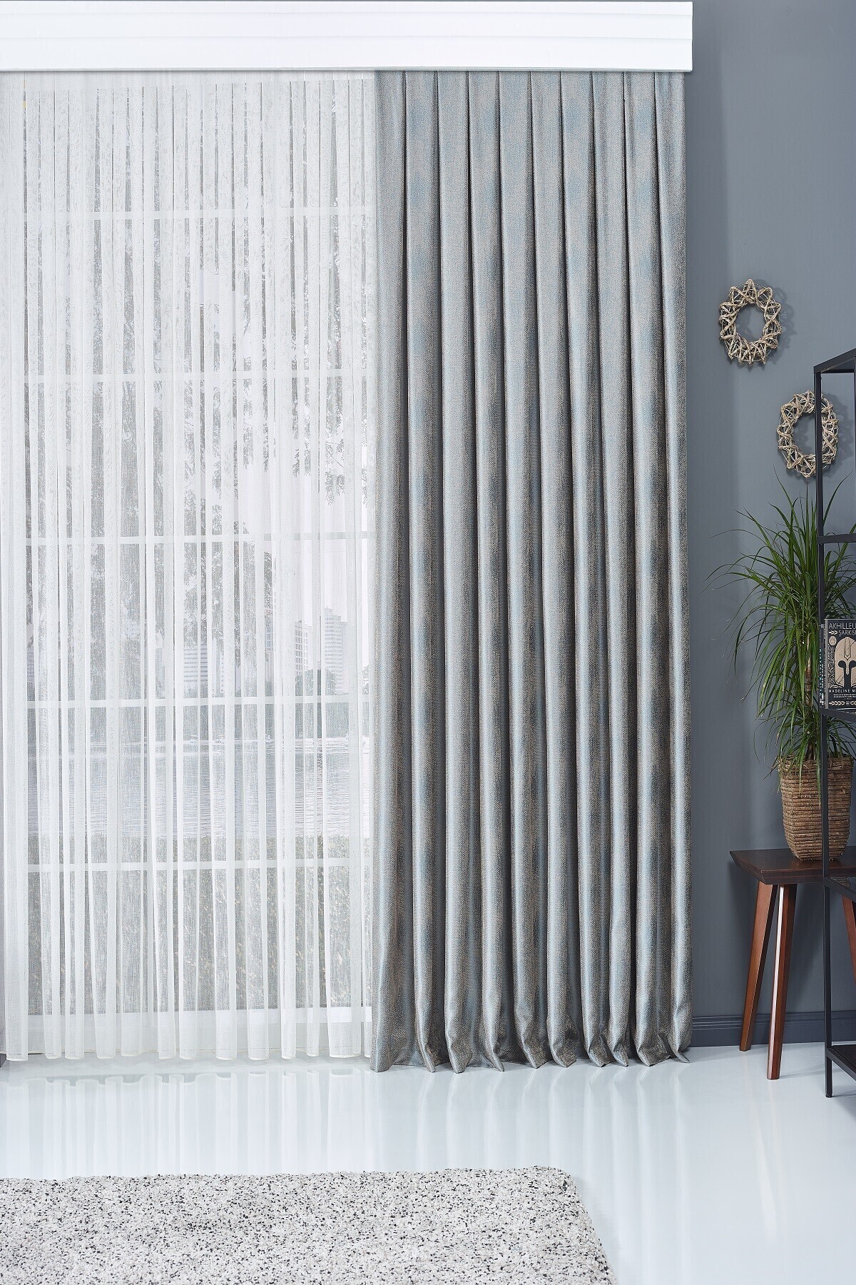 Gri Mavi Modern Minimalist Çok Şık Eskitme Jakar Fon Perde Ekstraforlu Büzdürmeli Brigette Gri Mavi Modern Minimalist Çok Şık Eskitme Jakar Fon Perde Ekstraforlu Büzdürmeli Brigette DP20002 325 x 250