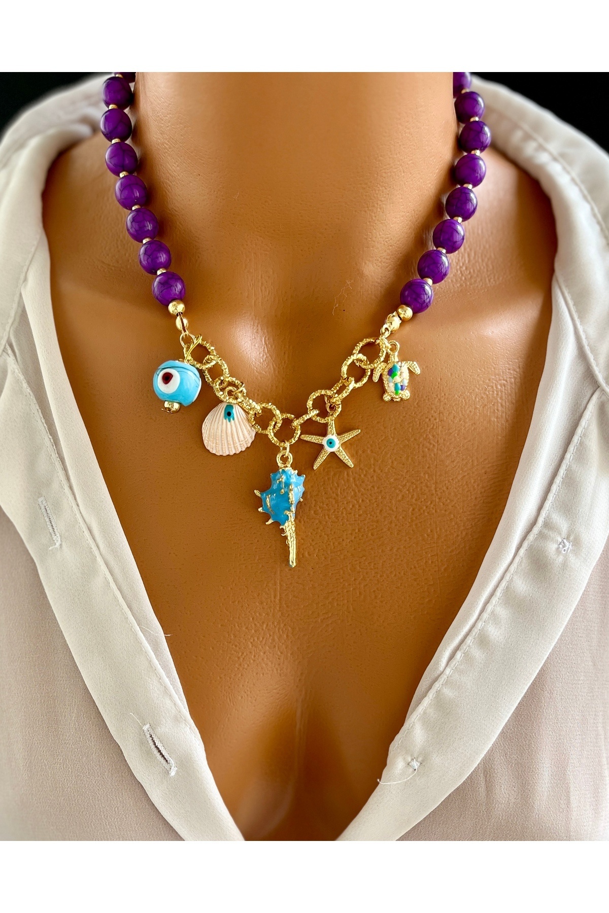 İstakoz,midye aksesuarlı charmlı fular kolye-trend fular kolye İstakoz,midye aksesuarlı charmlı fular kolye-trend fular kolye lmflr1 تک سایز