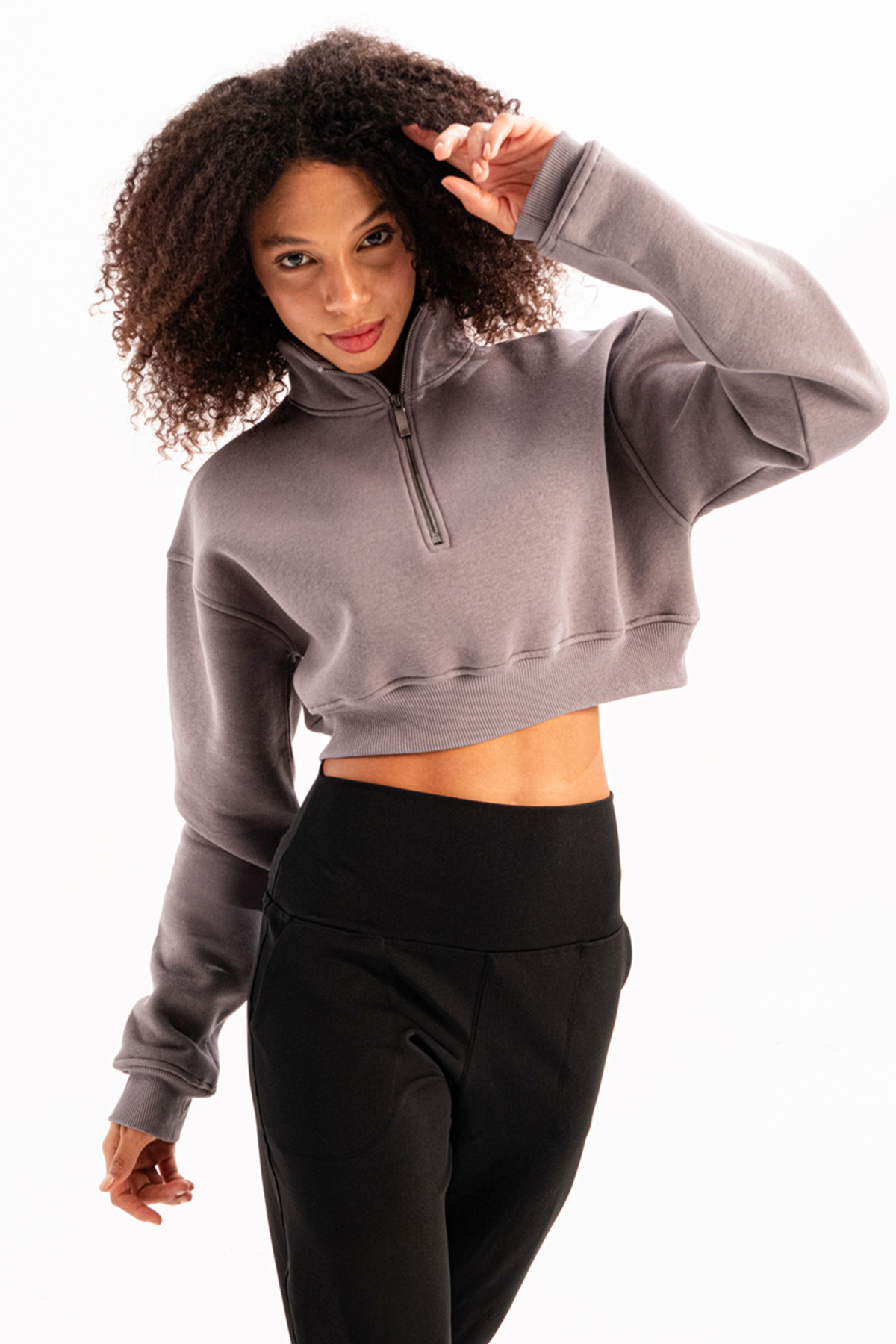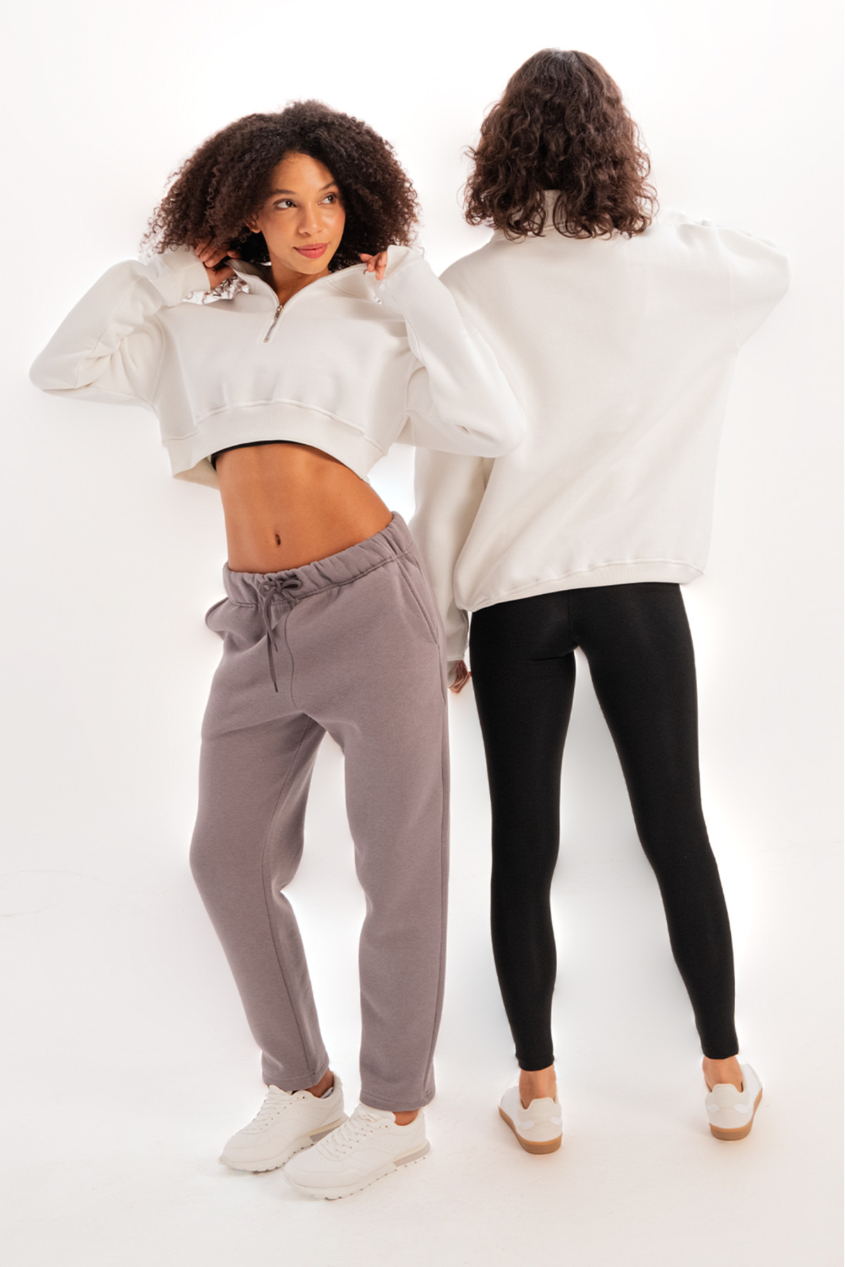 Crop Dik Yaka Yarı Fermuarlı Şardonlu Kadın Sweatshirt Vibe Ekru Crop Dik Yaka Yarı Fermuarlı Şardonlu Kadın Sweatshirt Vibe Ekru TCTY25ASPJM005 XL