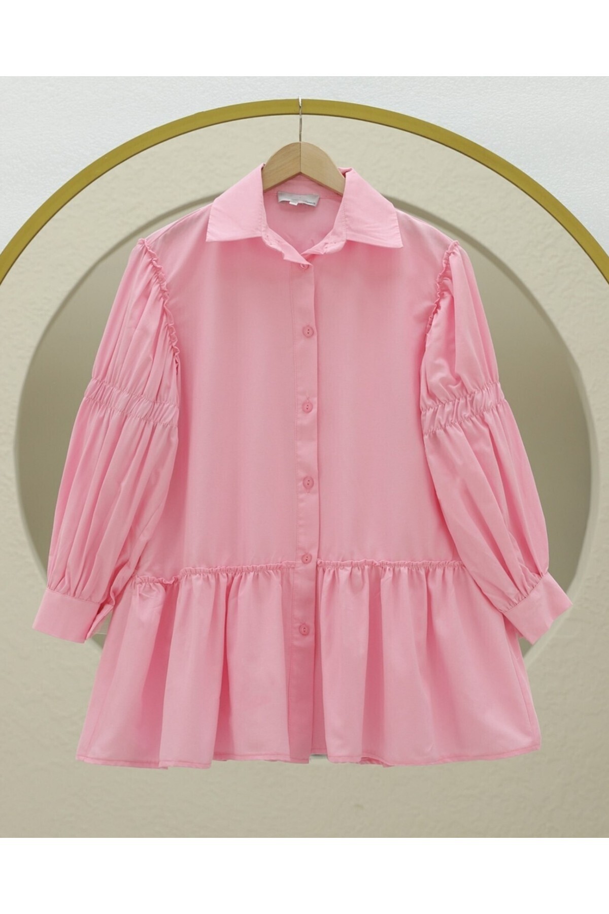 Koldan Büzgülü Fırfır Detaylı Gömlek -Açık Vizon Koldan Büzgülü Fırfır Detaylı Gömlek -Açık Vizon TY102-2103 42