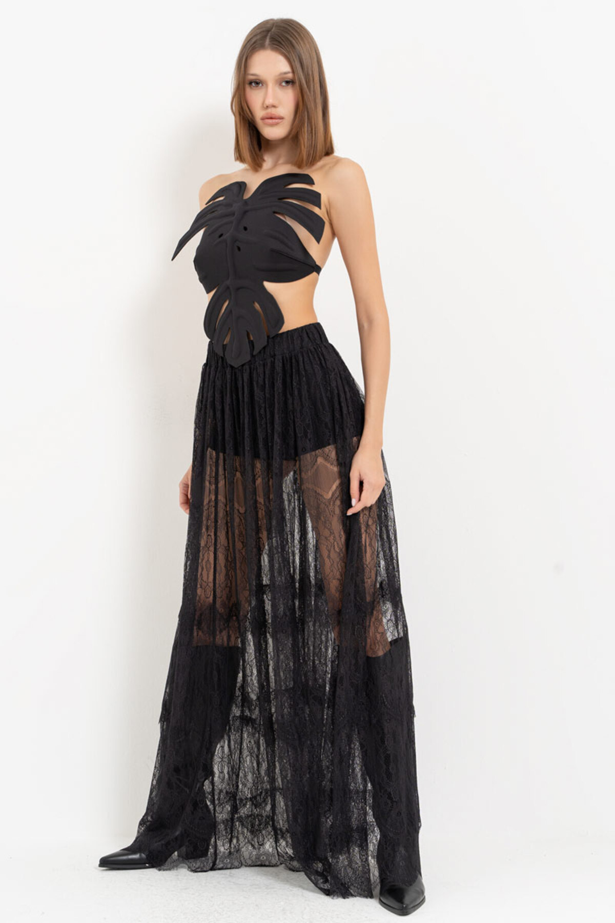 Siyah Beli Lastikli Uzun Dantel Etek Siyah Beli Lastikli Uzun Dantel Etek 42862 M