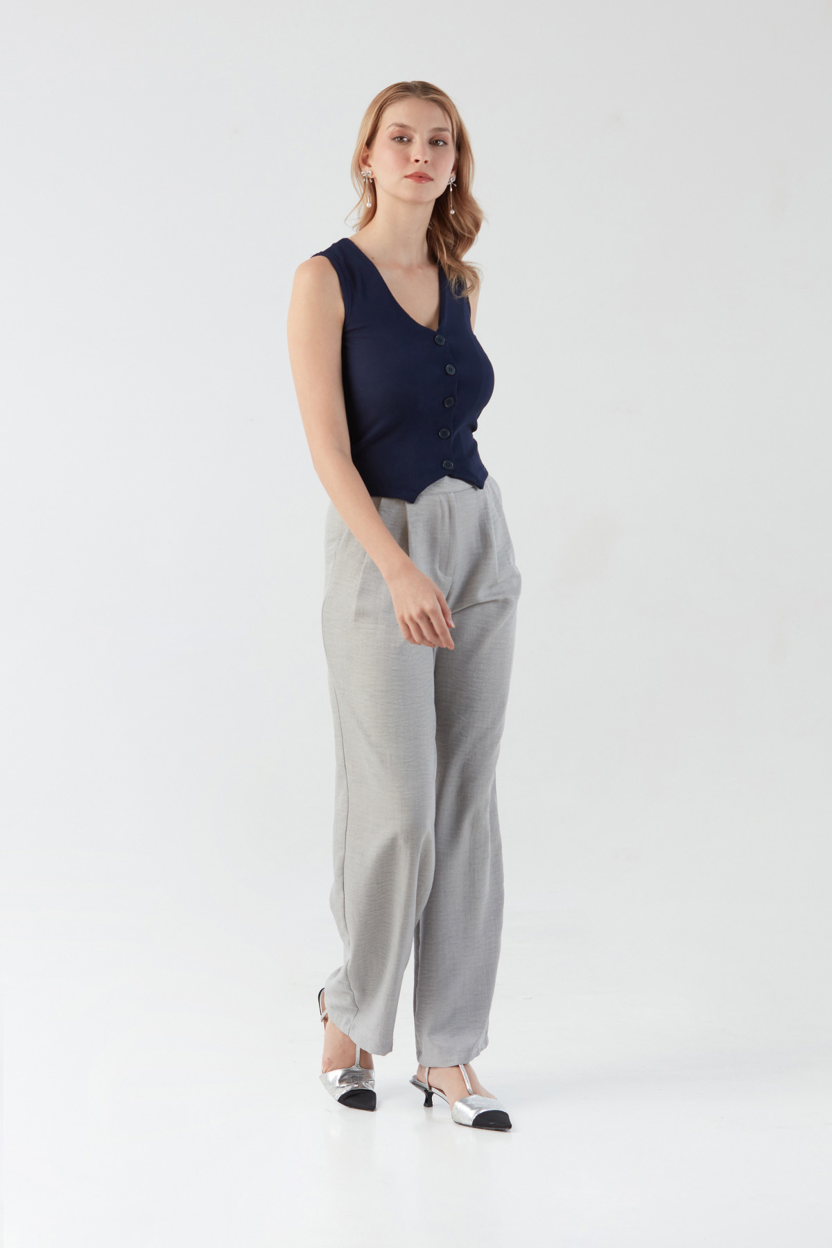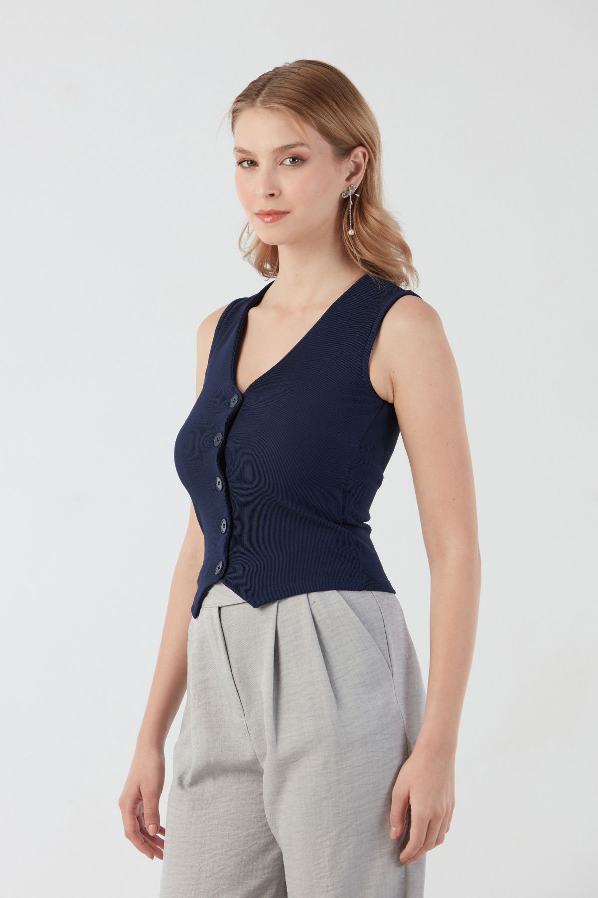 Düğmeli V Yaka Sıfır Kol Yelek Düğmeli V Yaka Sıfır Kol Yelek 25YGB7510128721 L