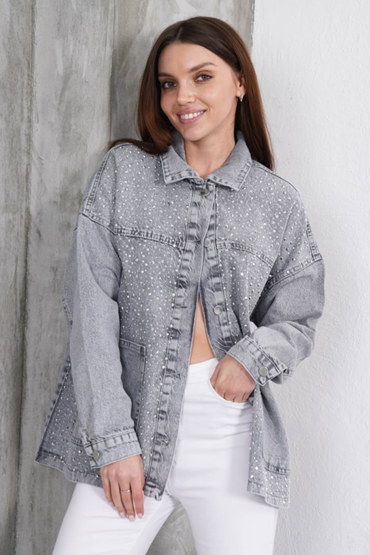 Ast 896 Çift Cepli Relax Kalıp Taşlı Kadın Kot Ceket Füme Ast 896 Çift Cepli Relax Kalıp Taşlı Kadın Kot Ceket Füme 896ce L