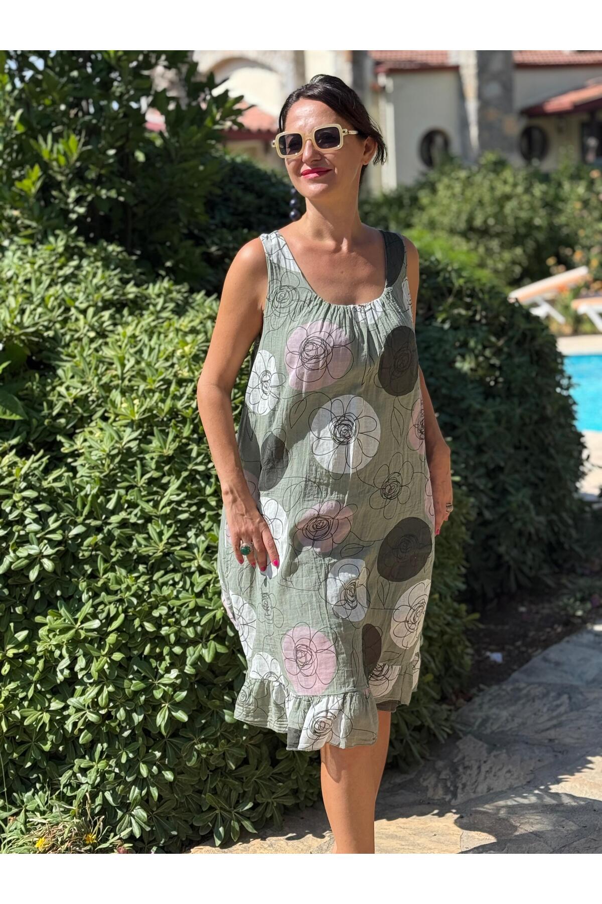 YG205070 İtalyan Yaprak Desen Coton Elbise Saks YG205070 İtalyan Yaprak Desen Coton Elbise Saks YG205070saks Standart