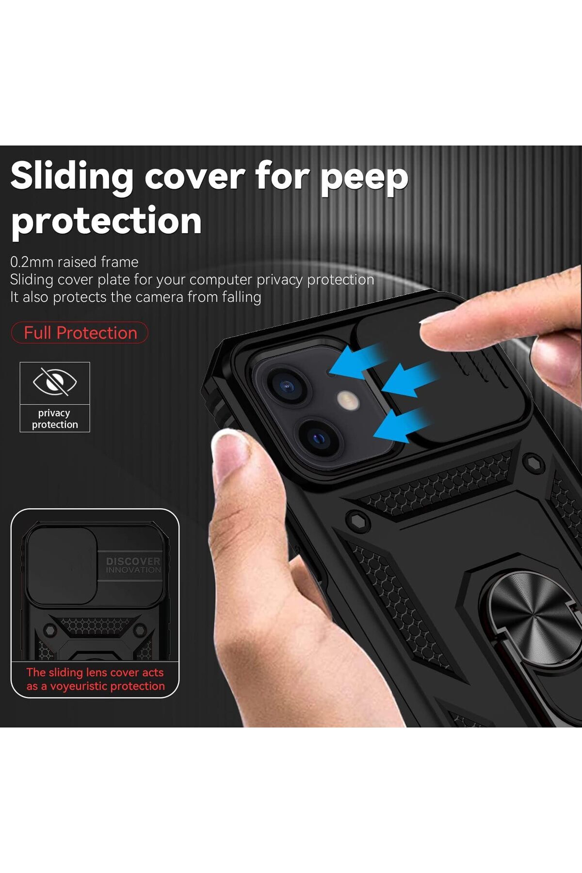Apple iPhone 12 Uyumlu Kılıf Kamera Sürgülü Standlı Yüzüklü Darbe Emici Zırh Koruyucu Tank Kapak Apple iPhone 12 Uyumlu Kılıf Kamera Sürgülü Standlı Yüzüklü Darbe Emici Zırh Koruyucu Tank Kapak PARSLENSİPHONE12KILIF تک سایز