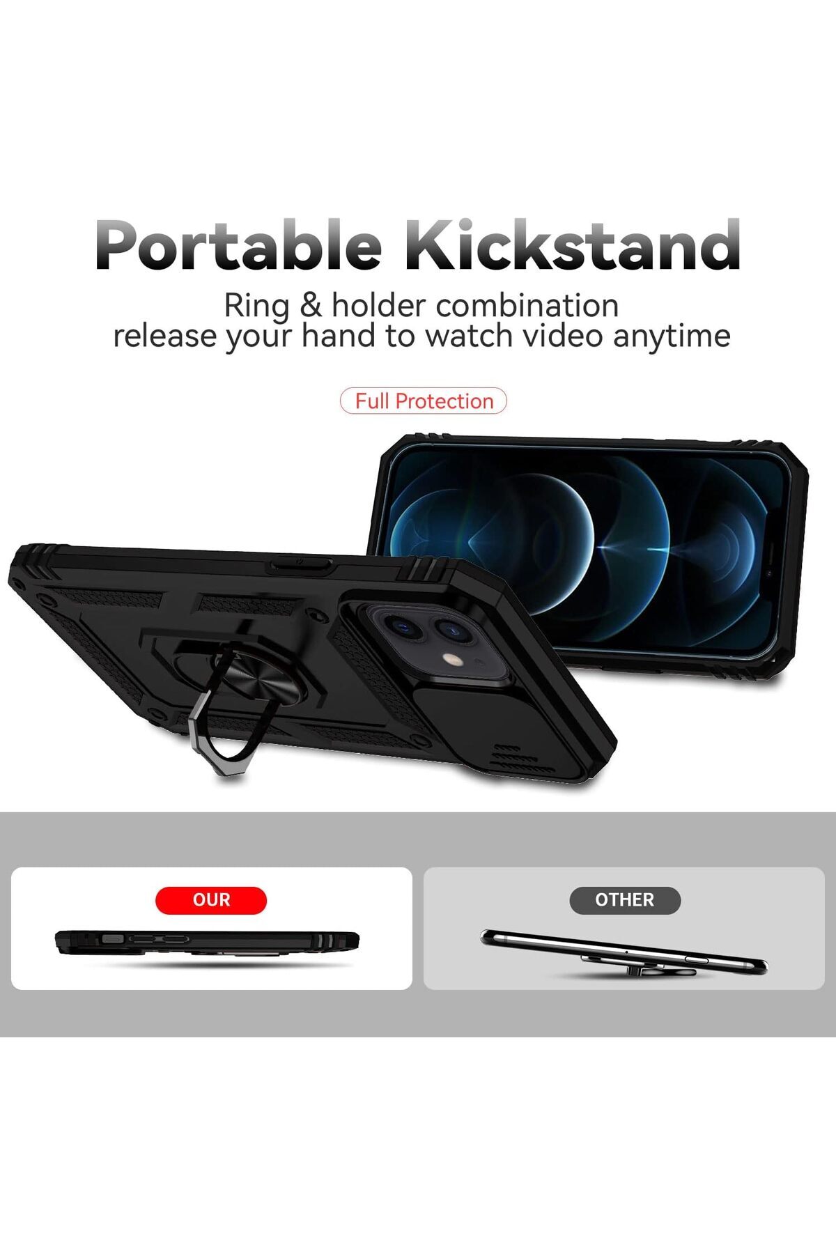 Apple iPhone 12 Uyumlu Kılıf Kamera Sürgülü Standlı Yüzüklü Darbe Emici Zırh Koruyucu Tank Kapak Apple iPhone 12 Uyumlu Kılıf Kamera Sürgülü Standlı Yüzüklü Darbe Emici Zırh Koruyucu Tank Kapak PARSLENSİPHONE12KILIF تک سایز