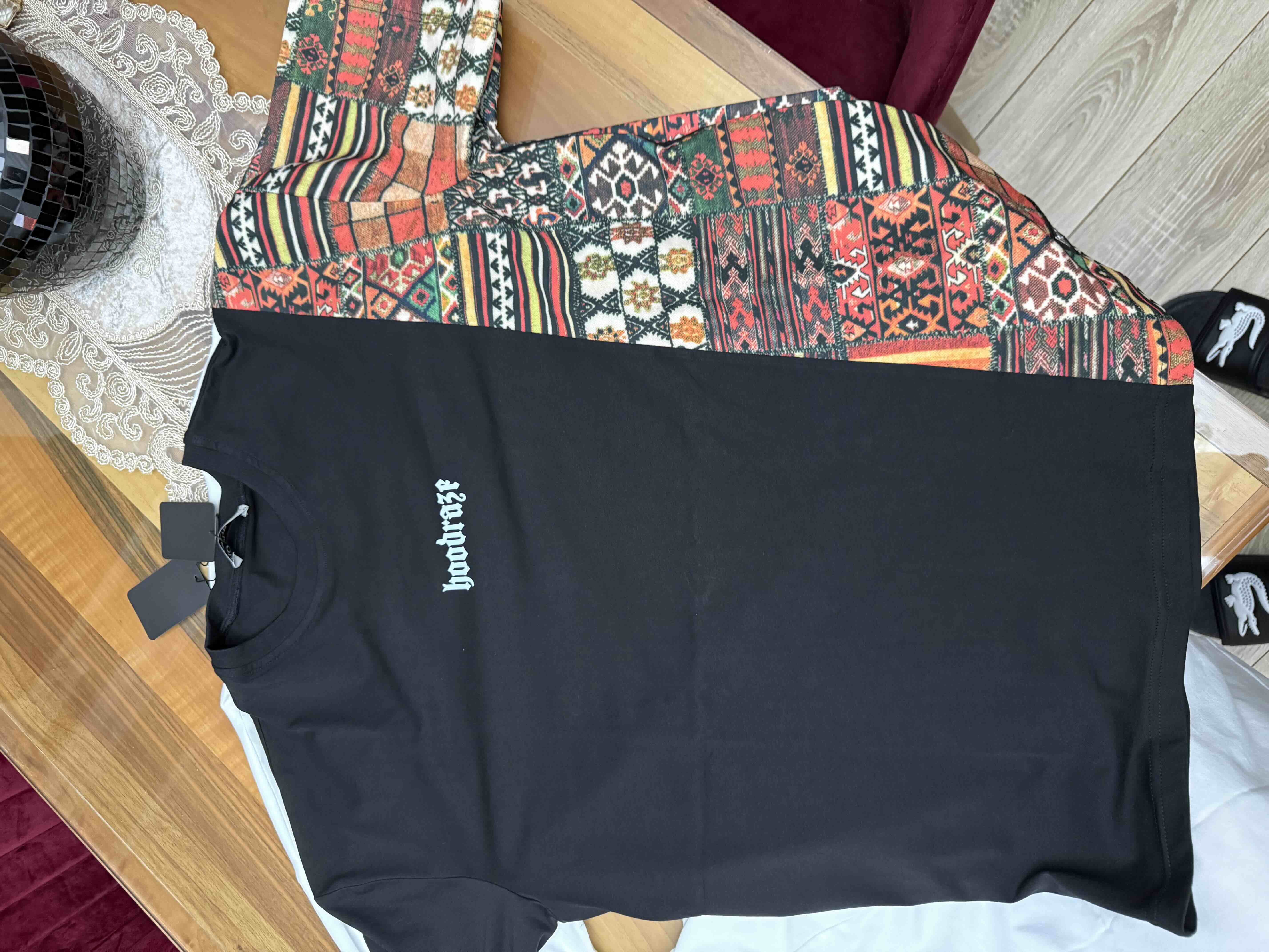 Erkek Ön Ve Kol Garnili T-shirt Oversize Erkek Ön Ve Kol Garnili T-shirt Oversize 1460 2XL