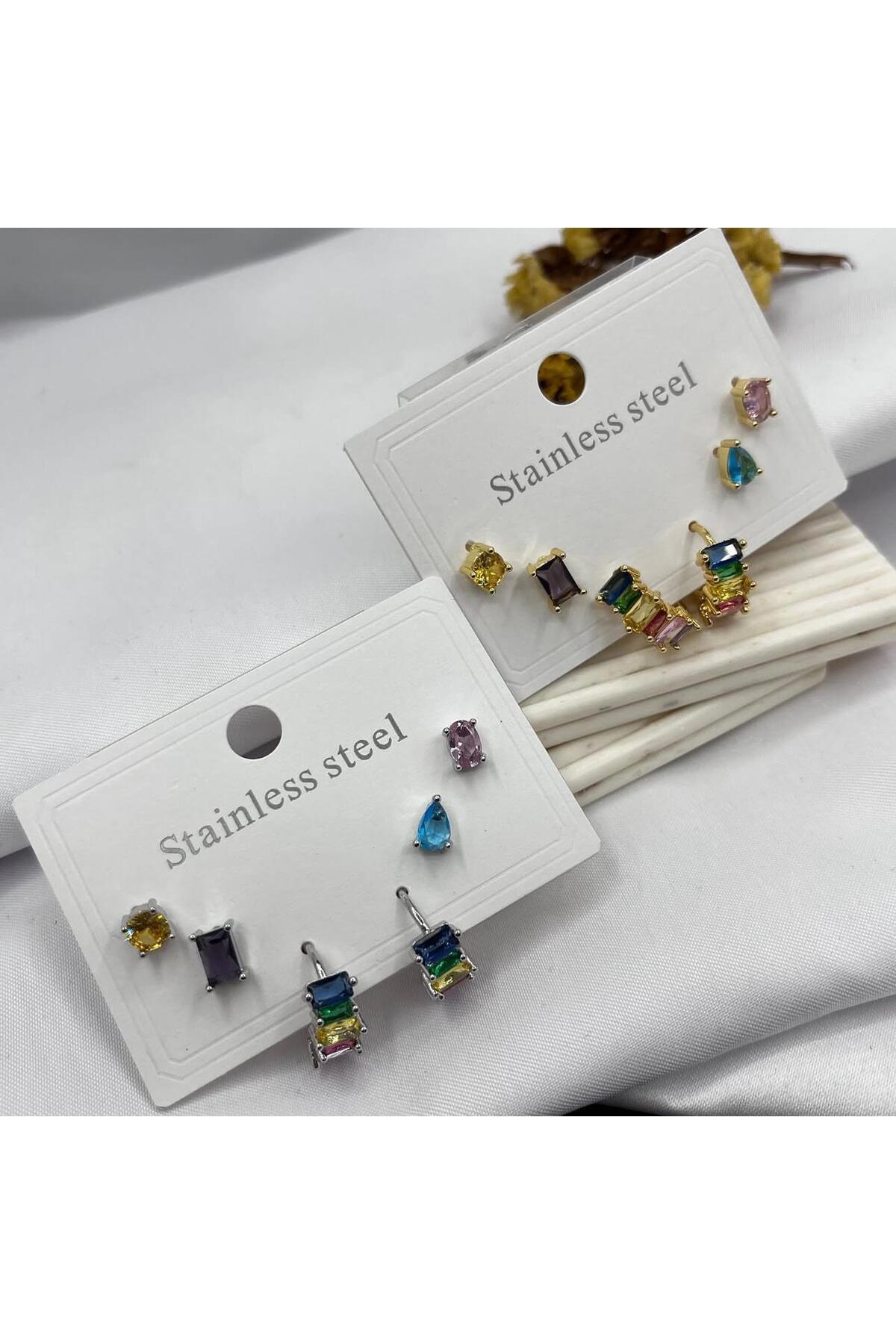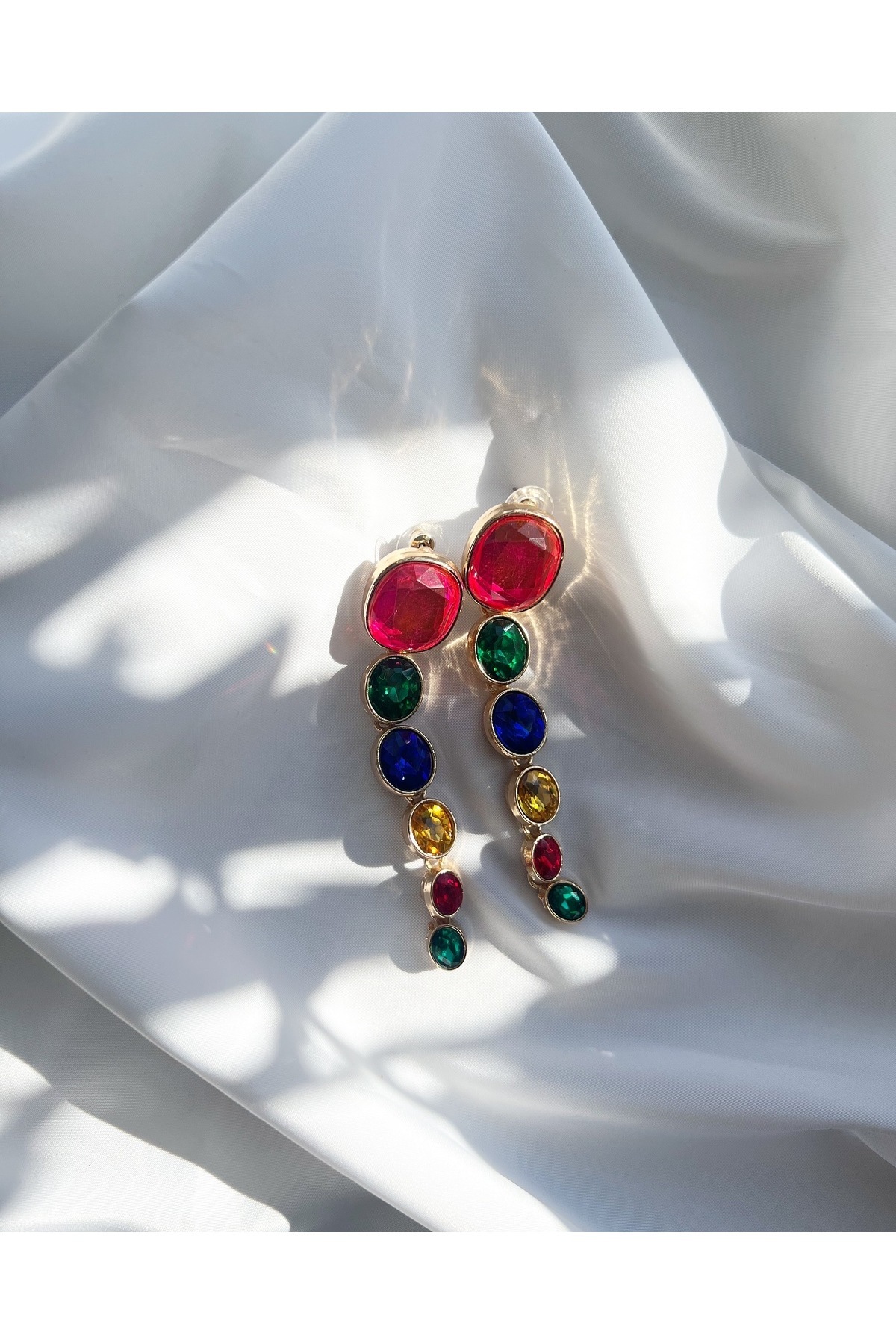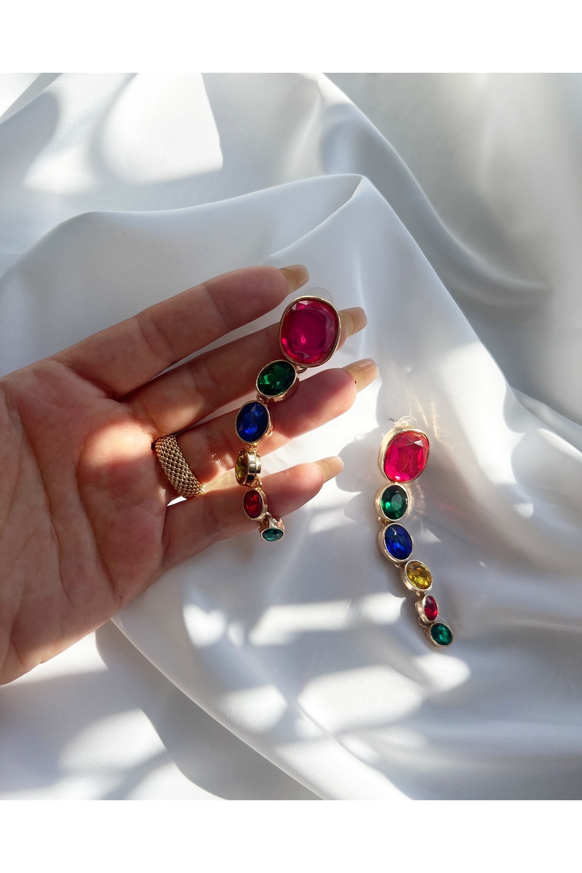 Renkli kristal taş sallantılı küpe Renkli kristal taş sallantılı küpe 1610168 تک سایز