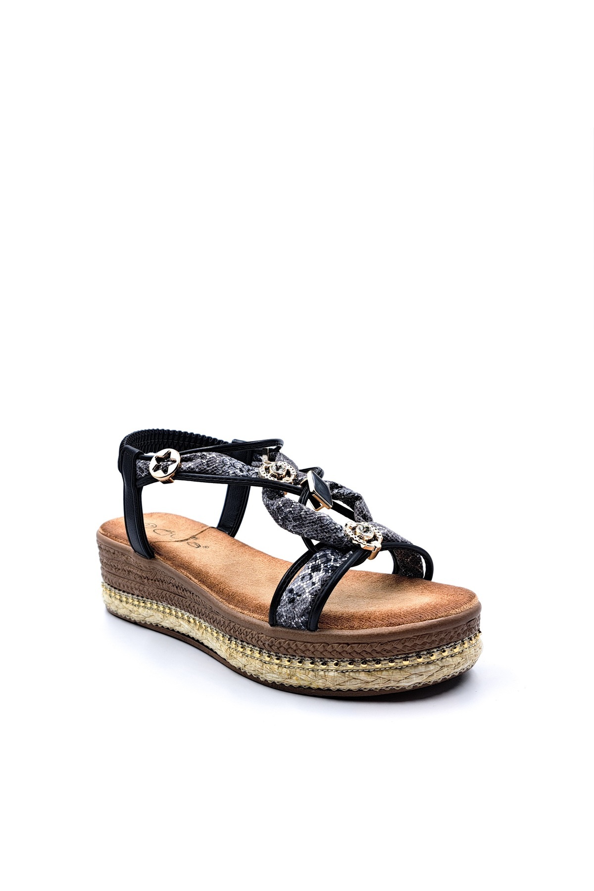 Dolgu Taban Espadril Detaylı Lastikli ve Taşlı Kadın Siyah Şık Spor Sandalet Dolgu Taban Espadril Detaylı Lastikli ve Taşlı Kadın Siyah Şık Spor Sandalet G25Y171 41