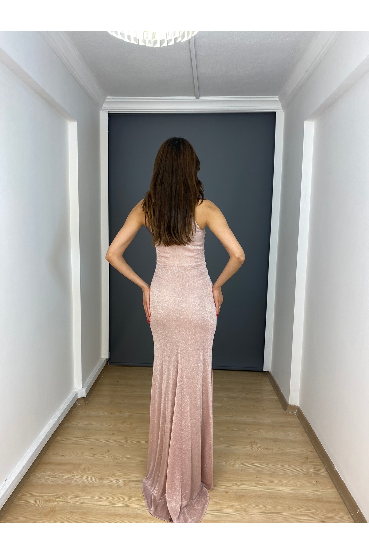 Pudra Stefani Yaka Simli Esnek Kumaş Yırtmaçlı Uzun Abiye Elbise Pudra Stefani Yaka Simli Esnek Kumaş Yırtmaçlı Uzun Abiye Elbise g4010 48