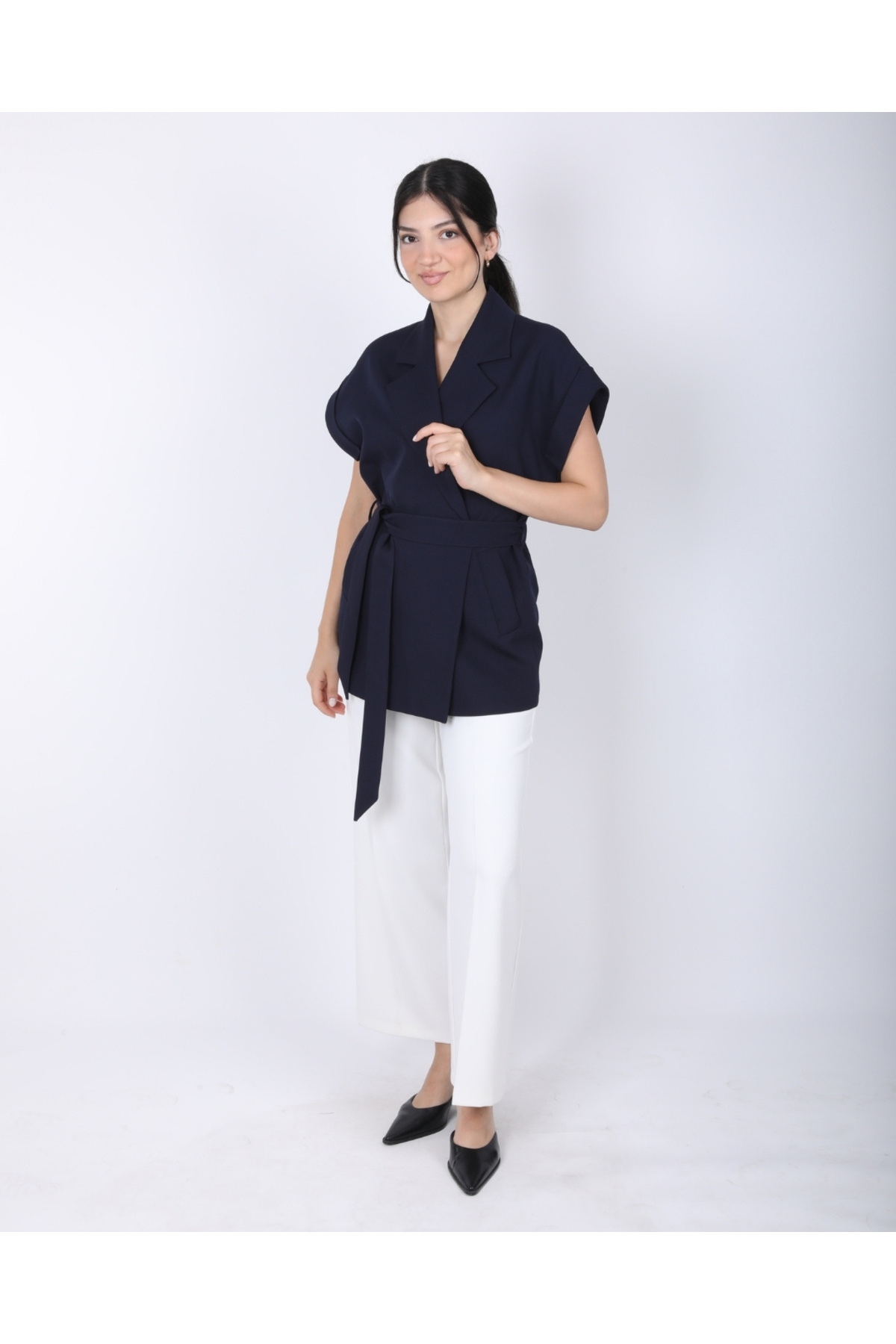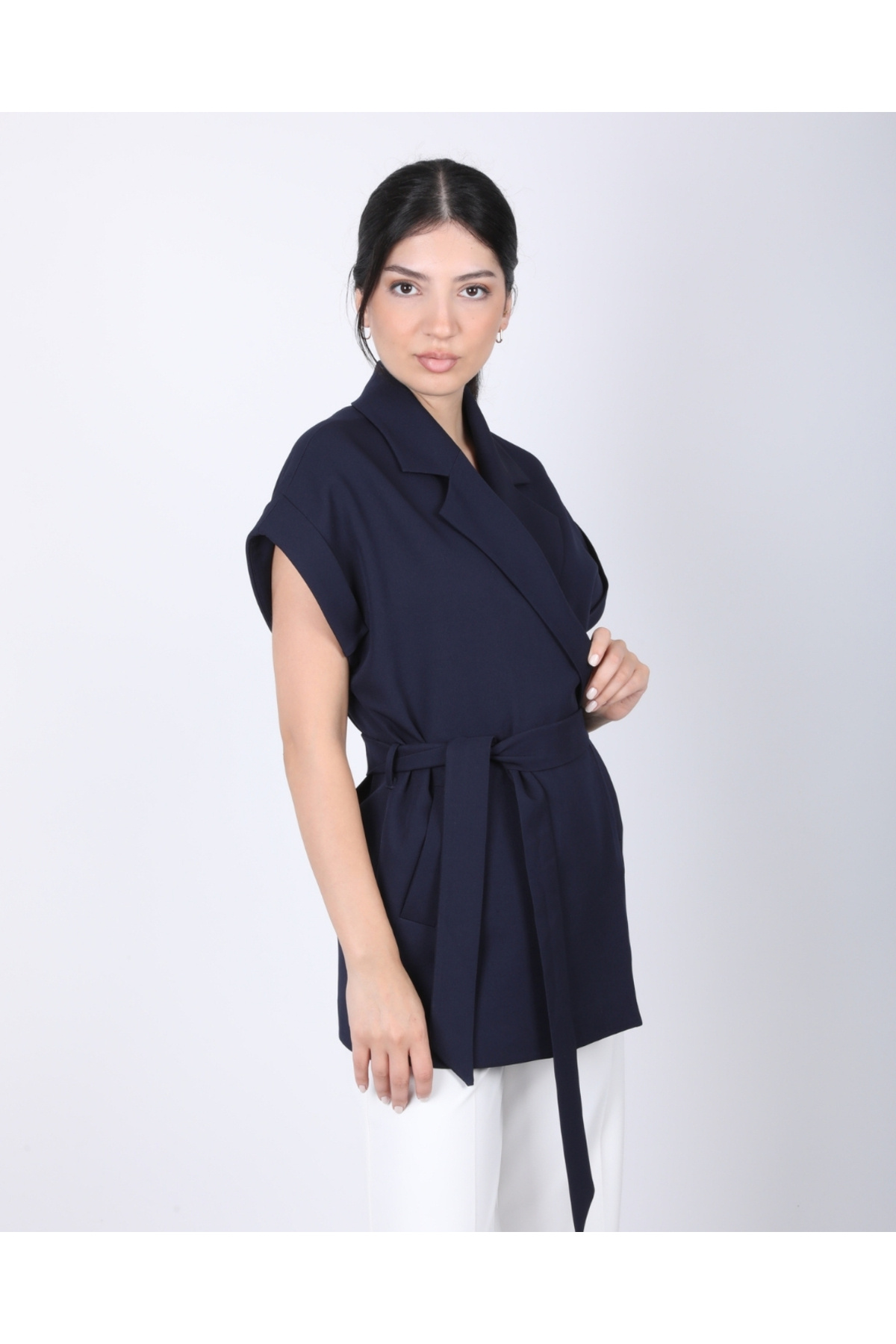 Kadın Lacivert Düşük Omuzlu Oversize Kuşaklı Yelek Kadın Lacivert Düşük Omuzlu Oversize Kuşaklı Yelek YLK04 XL
