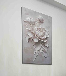 Modern Kabartma Görünümlü Beyaz Şakayık Çiçeği Duvar Dekoru Özel Tasarım Kanvas Tablo Modern Kabartma Görünümlü Beyaz Şakayık Çiçeği Duvar Dekoru Özel Tasarım Kanvas Tablo EMİLART105410540-E 100 x 150