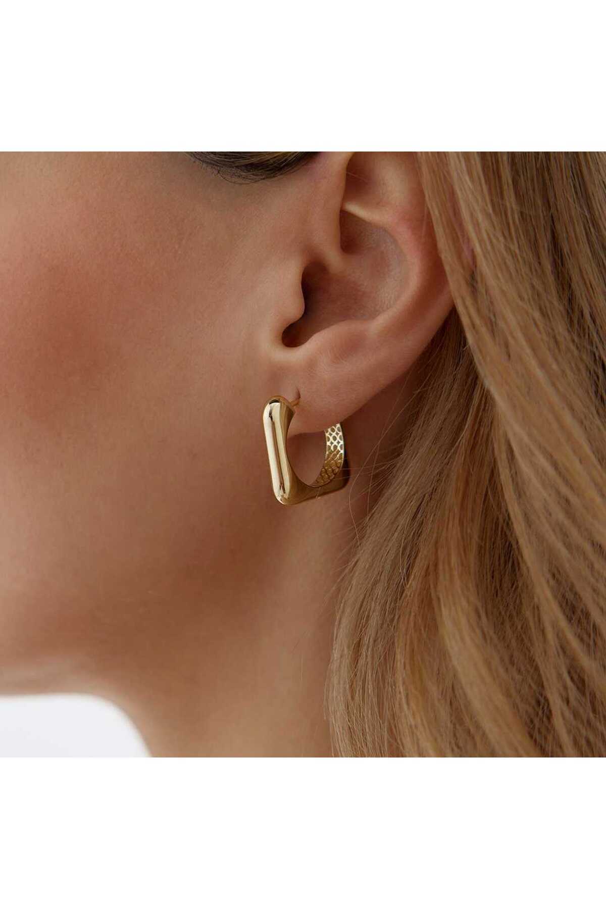 14 Ayar Altın Kare Bombeli Küpe 14 Ayar Altın Kare Bombeli Küpe KP27851 تک سایز