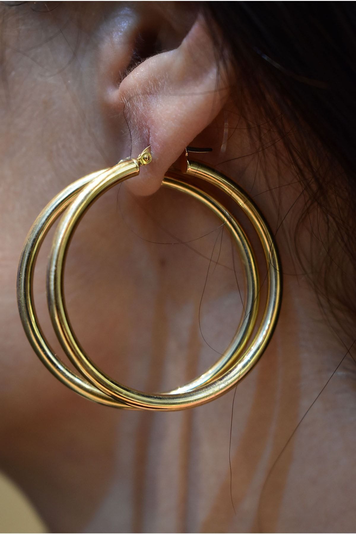 14 Ayar Altın Kalın Bombeli Yarım Halka Küpe 14 Ayar Altın Kalın Bombeli Yarım Halka Küpe KP27841 تک سایز