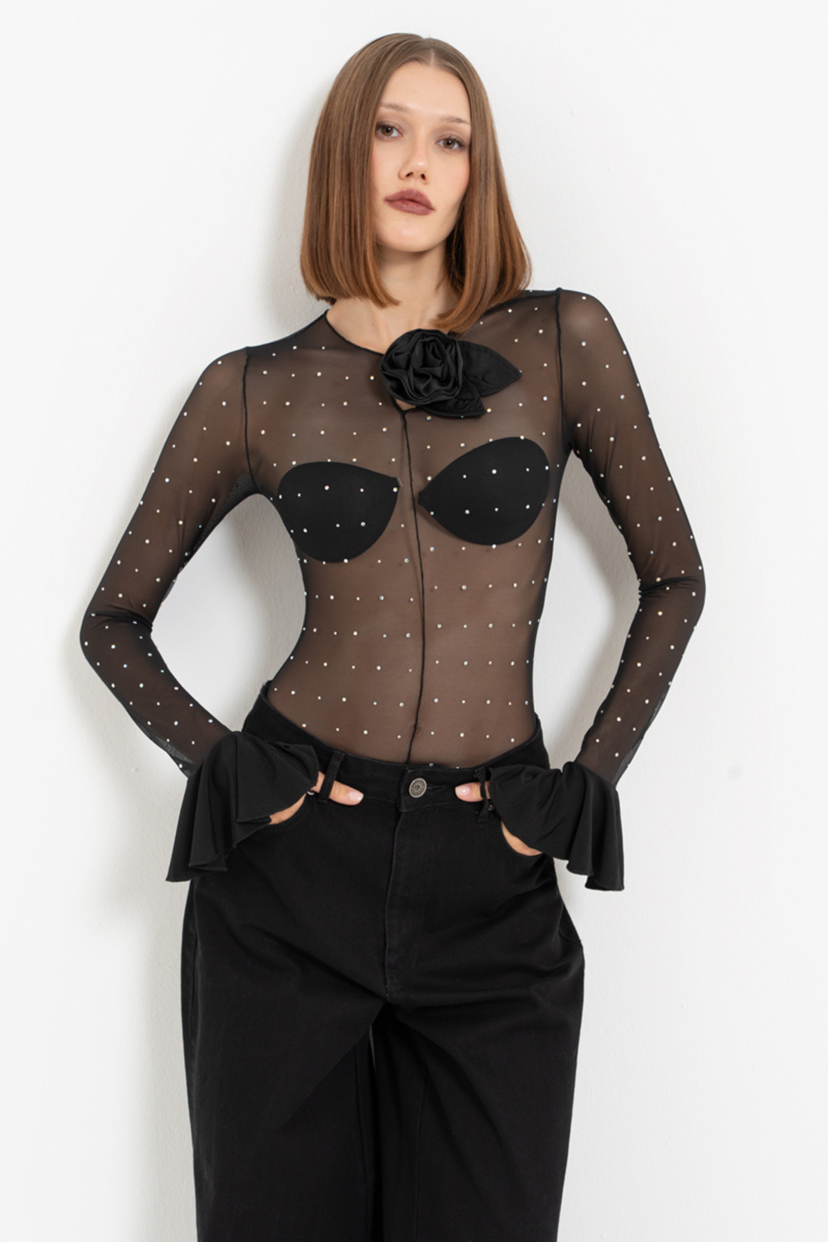 Taşlı Transparan Bodysuit Taşlı Transparan Bodysuit 103366 M