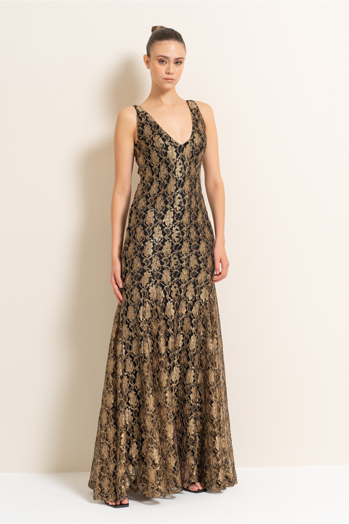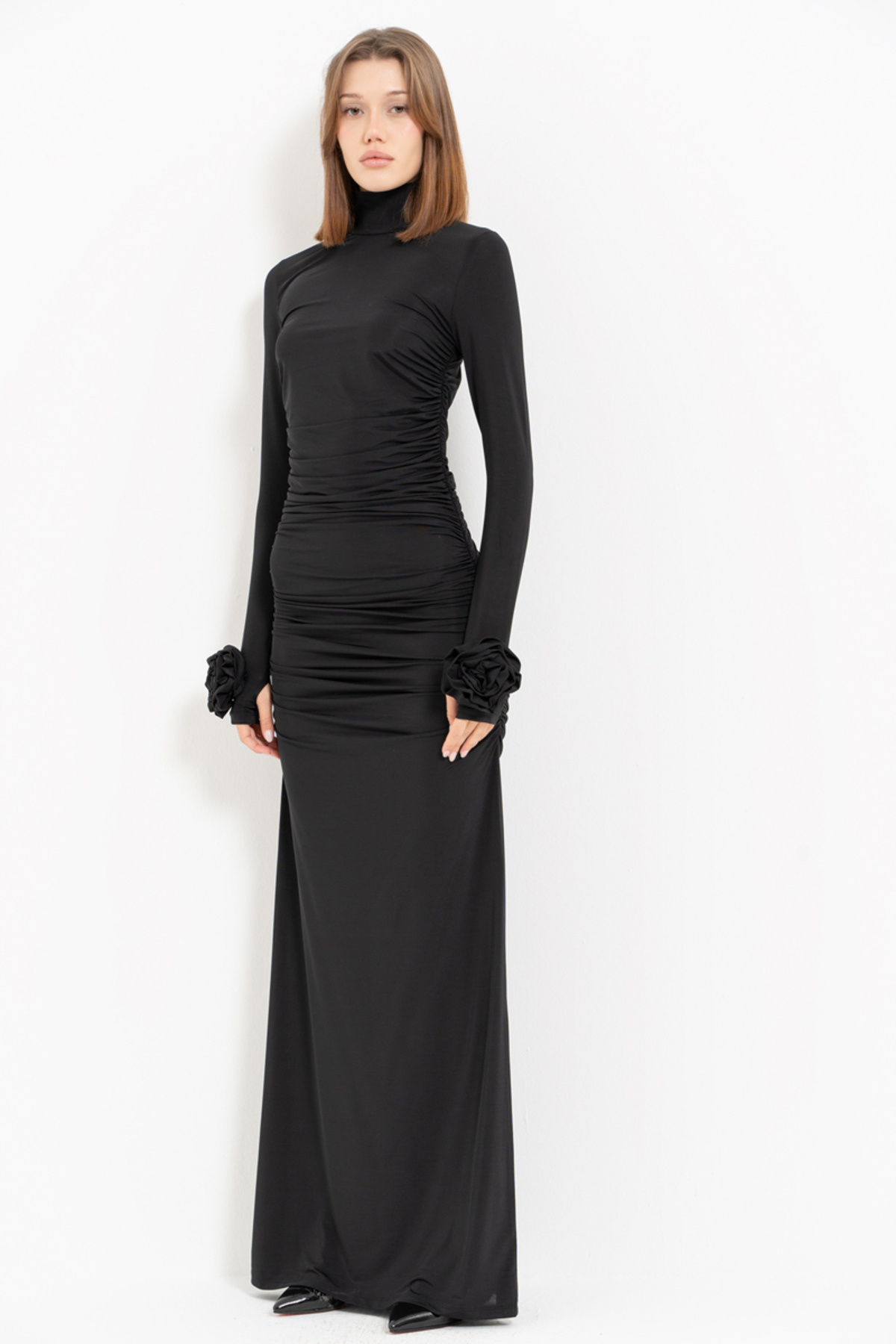 Siyah File Detaylı Agraflı Uzun Elbise Siyah File Detaylı Agraflı Uzun Elbise 59315 M