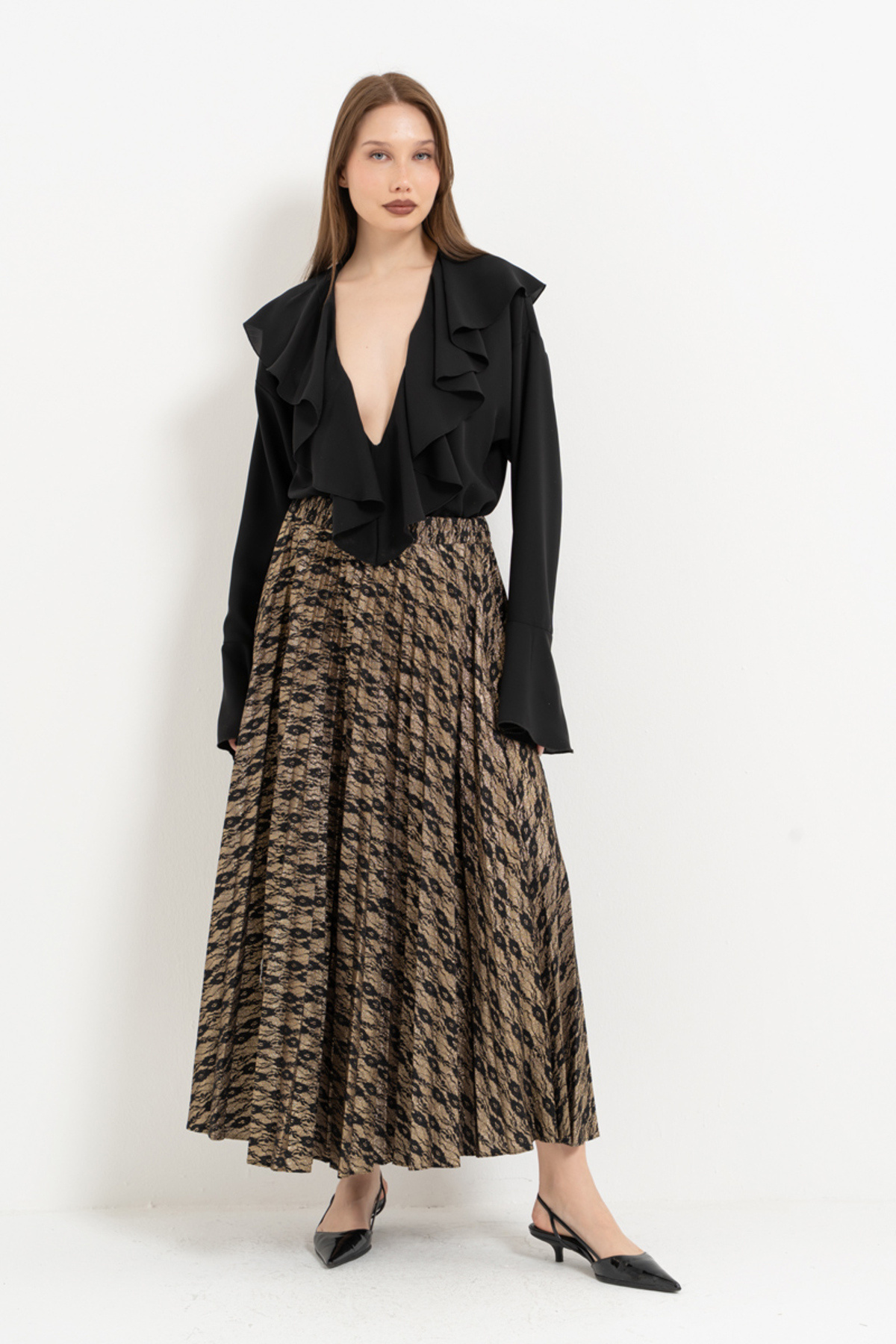 Siyah-Altin Beli Lastikli Piliseli Uzun Etek Siyah-Altin Beli Lastikli Piliseli Uzun Etek 42925 M