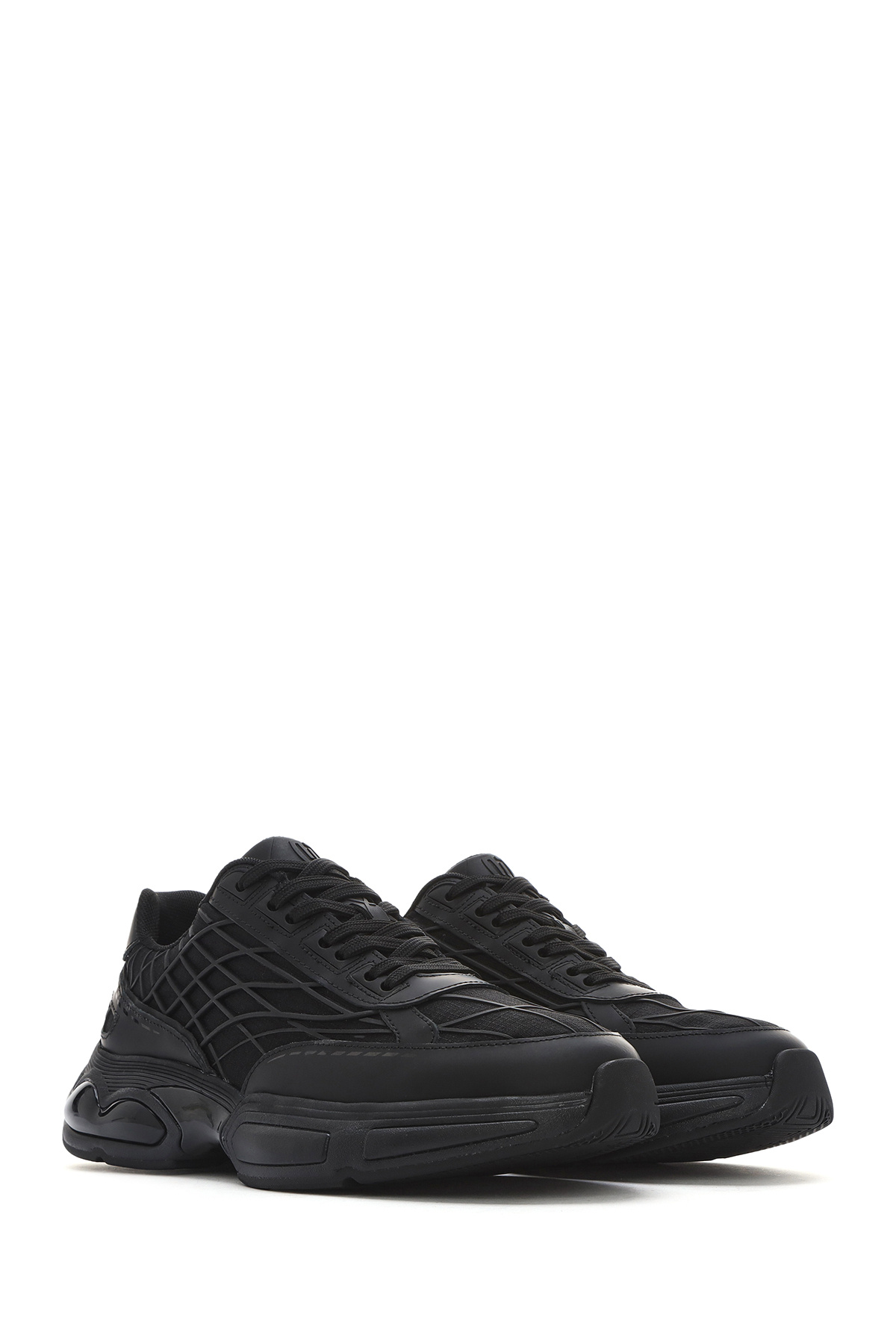 Erkek Siyah Bağcıklı Kalın Tabanlı Kumaş Sneaker 25SFD69416F Erkek Siyah Bağcıklı Kalın Tabanlı Kumaş Sneaker 25SFD69416F 45