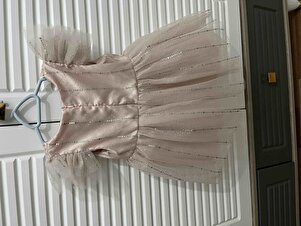 Pudra Parlak Şeritli Kolsuz Kız Çocuk Kız Bebek Elbise Pudra Parlak Şeritli Kolsuz Kız Çocuk Kız Bebek Elbise parlakşerit 4-5 Yaş