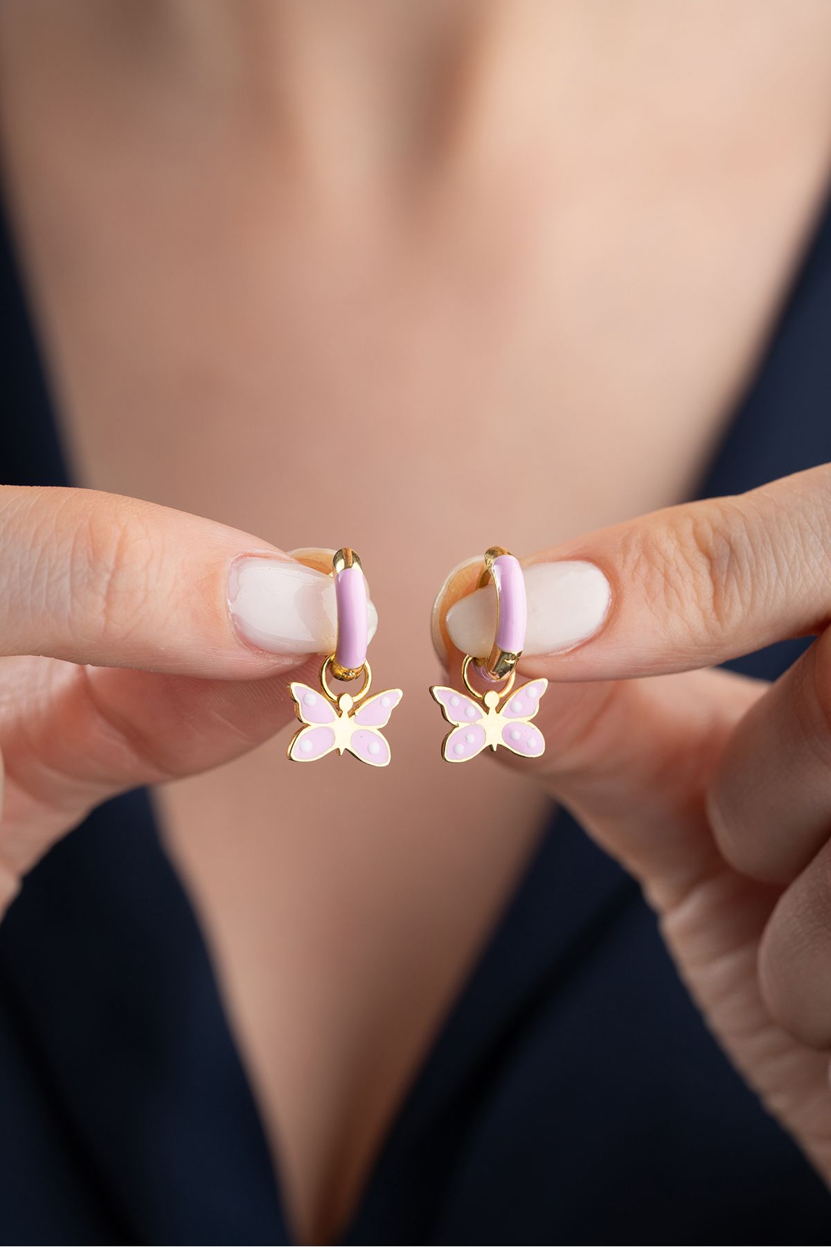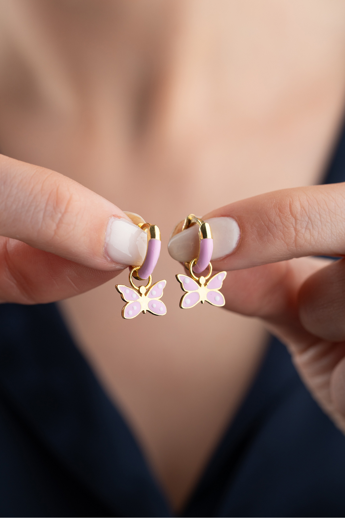 925 Ayar Gümüş Mineli Kelebek Çocuk Küpe 925 Ayar Gümüş Mineli Kelebek Çocuk Küpe SİLVANOJEWELRY0000324 تک سایز