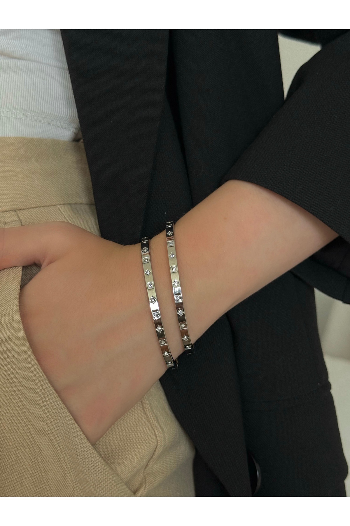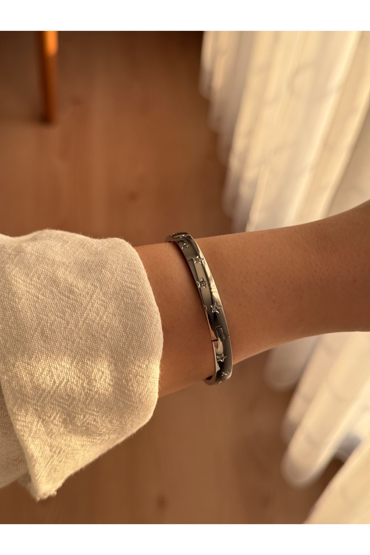 Beyaz Taşlı Yıldız Motifli Çelik Gümüş Kelepçe Bileklik Beyaz Taşlı Yıldız Motifli Çelik Gümüş Kelepçe Bileklik VOLA250217 تک سایز
