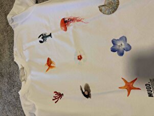 Kadın Yazlık Renkli Deniz Yıldızı ve Mercan Baskılı Beyaz Tişört Kadın Yazlık Renkli Deniz Yıldızı ve Mercan Baskılı Beyaz Tişört PRA-12739470-223436 2XL