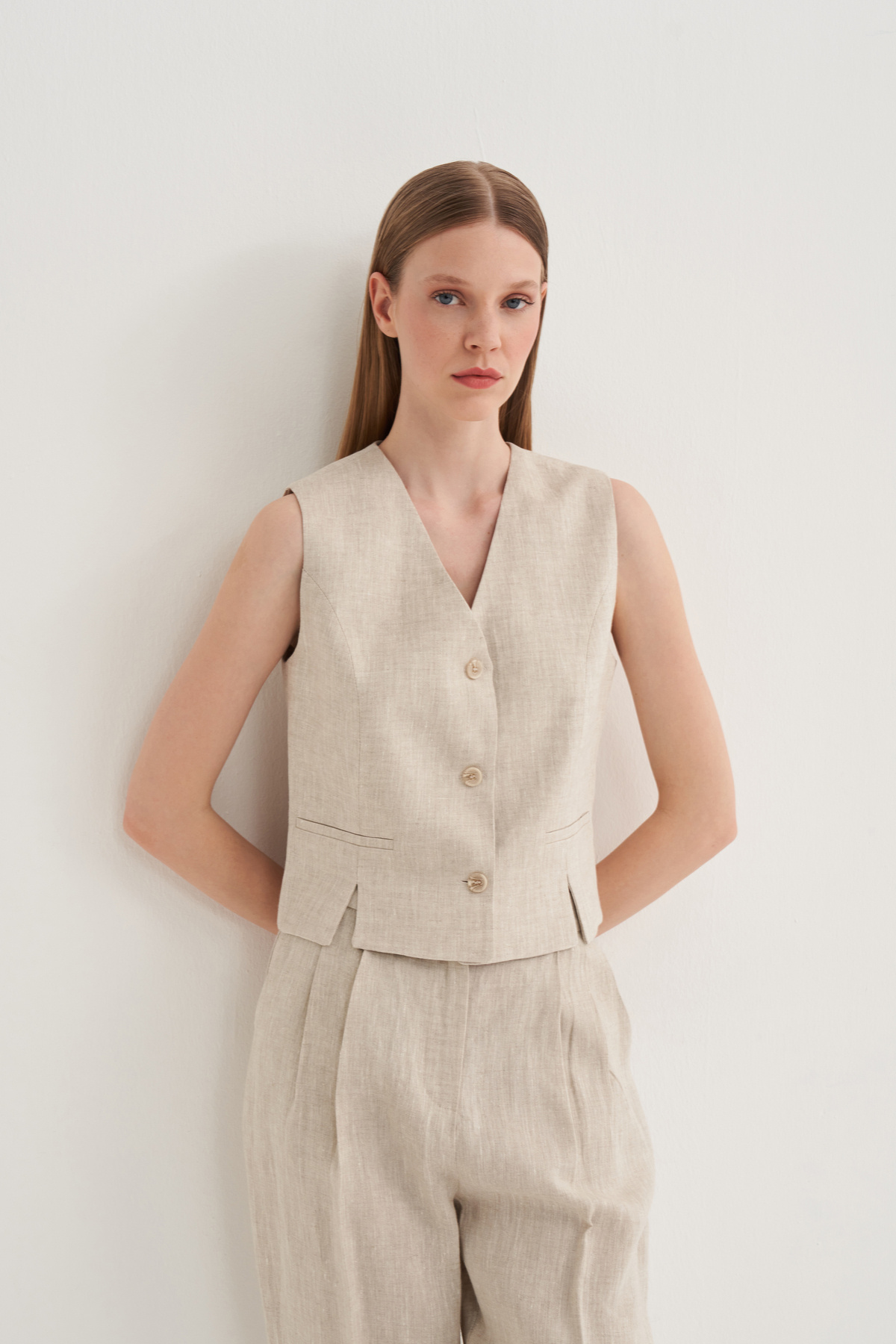 Yırtmaçlı Keten Yelek Yırtmaçlı Keten Yelek JRB003-1 XL