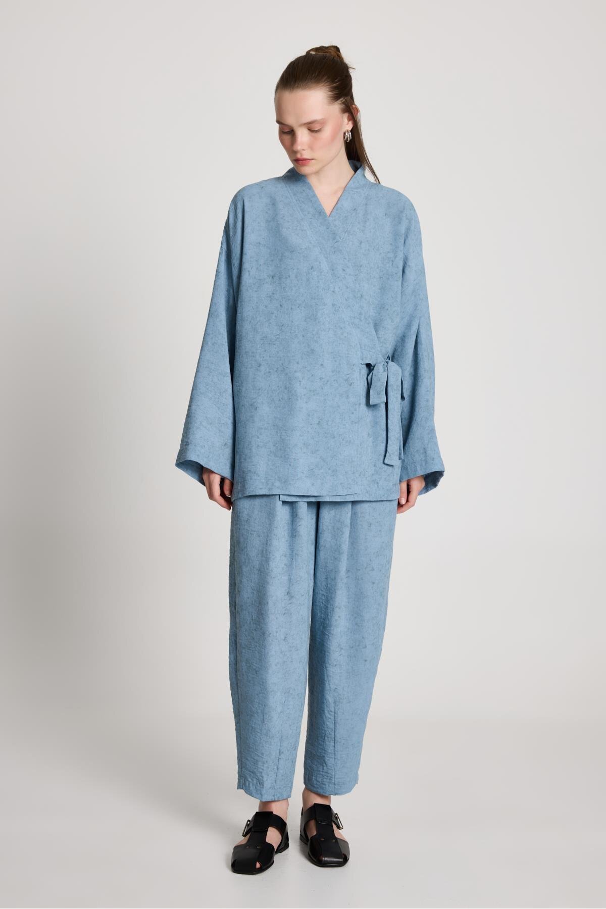 Bellamy Bağlamalı Keten Kimono İndigo Bellamy Bağlamalı Keten Kimono İndigo 29191 L