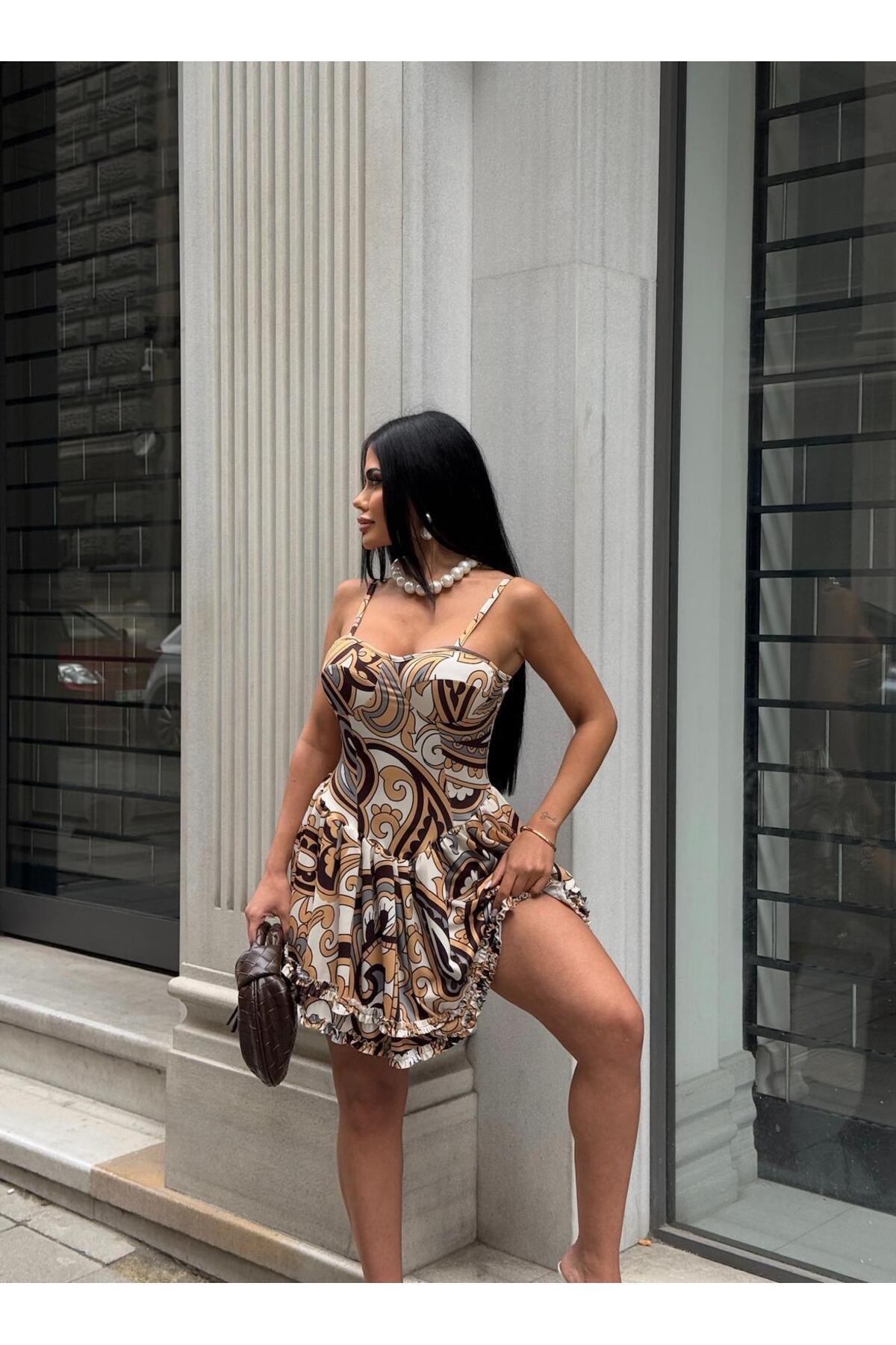 Dijital Micro Kumaş Desenli Etek Çift Fırfır Elbise Dijital Micro Kumaş Desenli Etek Çift Fırfır Elbise gnzecf001 L