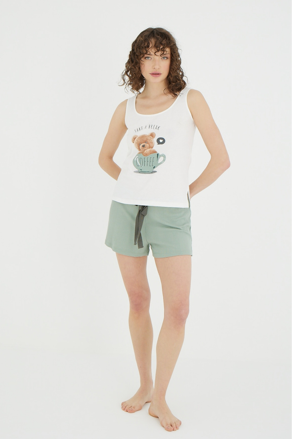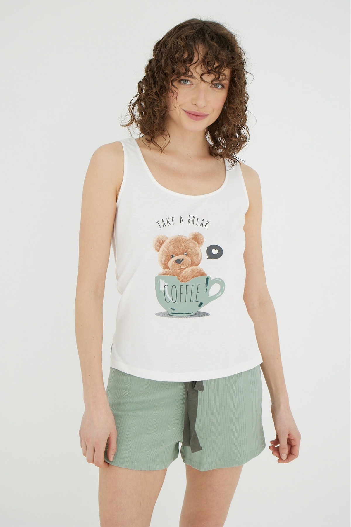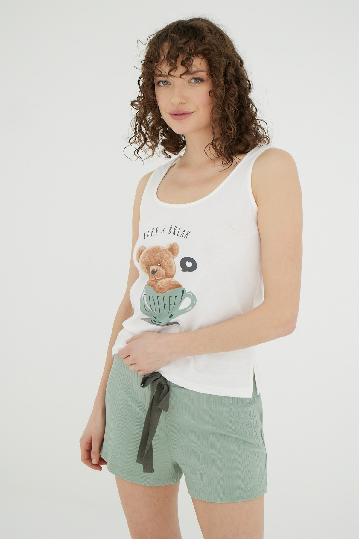 Sevimli Ayıcık Baskılı Atlet Şort Pijama Takımı Sevimli Ayıcık Baskılı Atlet Şort Pijama Takımı 8680 XL