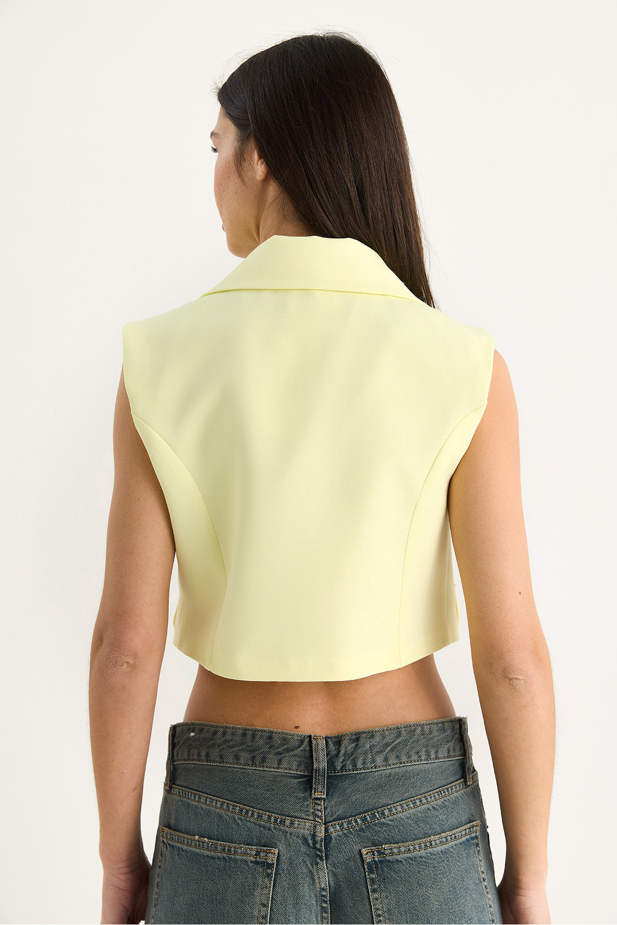 Kadın Şal Yaka Astarlı Double Crop Yelek 6002 60283383 Kadın Şal Yaka Astarlı Double Crop Yelek 6002 60283383 L