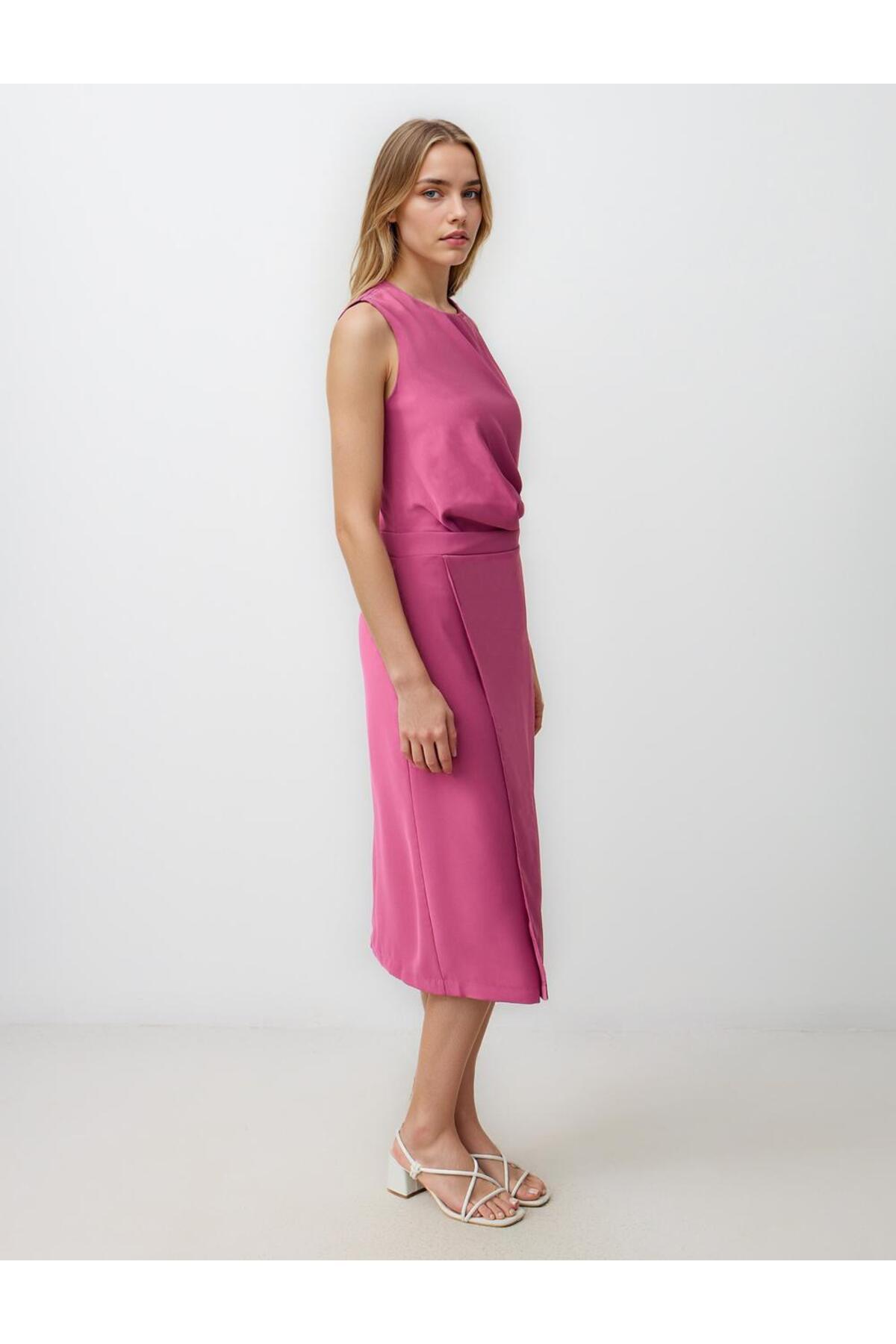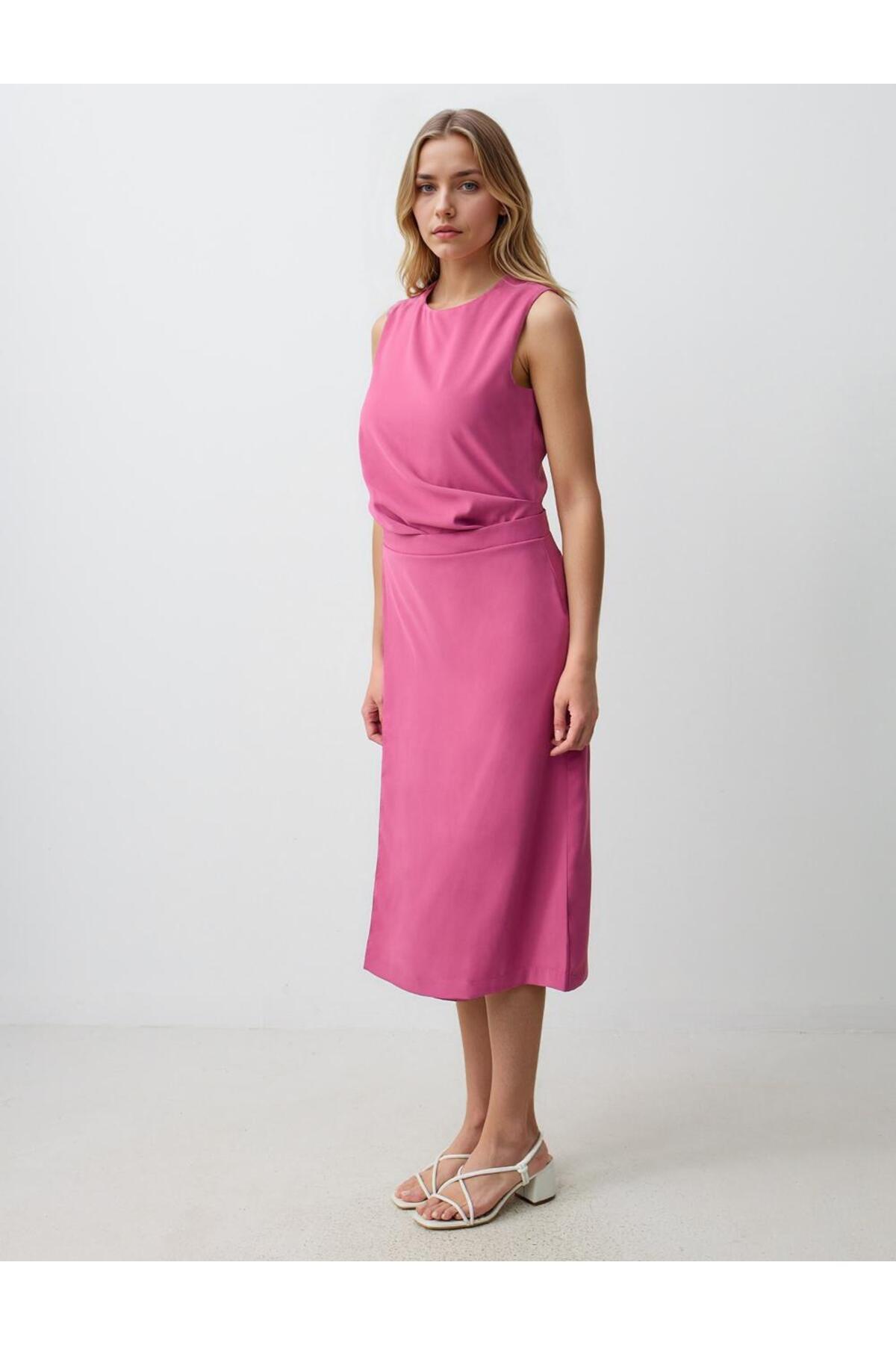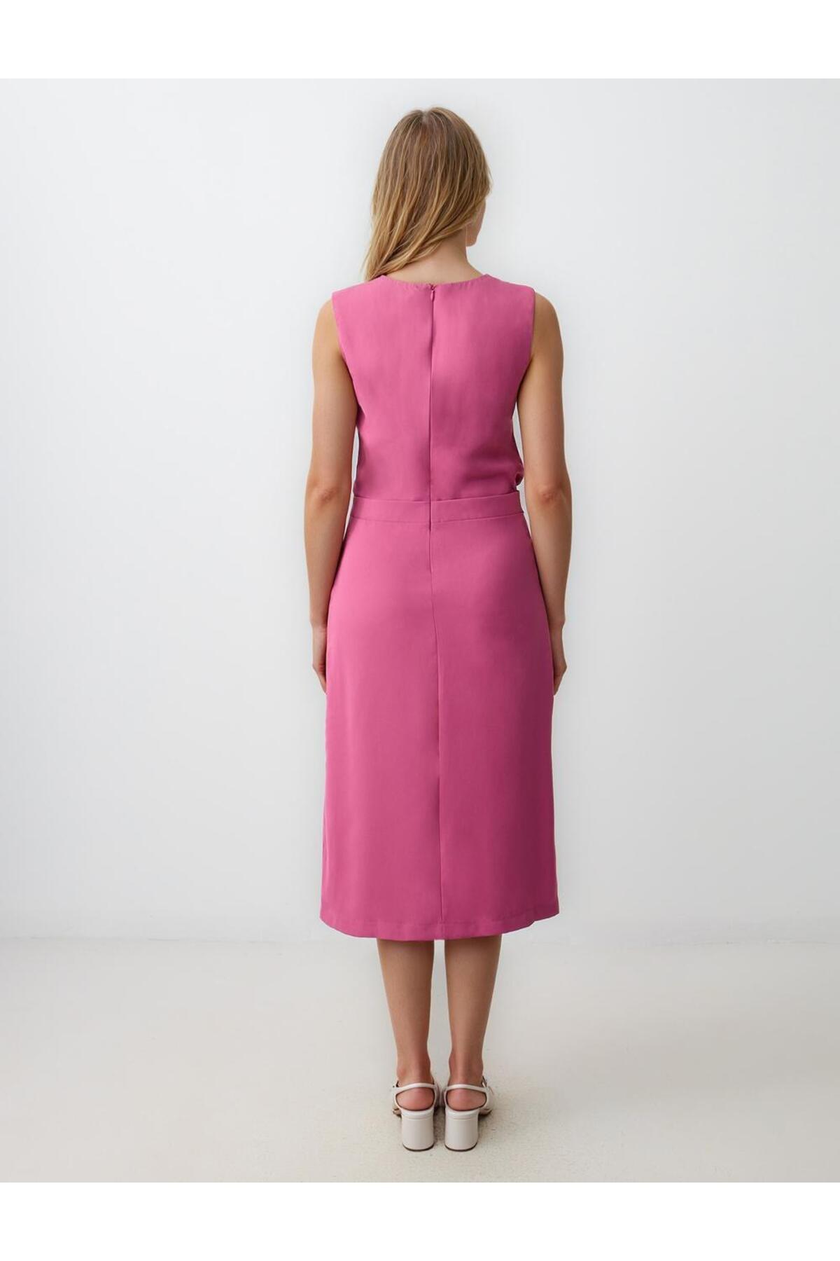 Gül Kurusu Düz Kesim Yuvarlak Yaka Kolsuz Dokuma Midi Elbise Gül Kurusu Düz Kesim Yuvarlak Yaka Kolsuz Dokuma Midi Elbise 5SW063832 XL