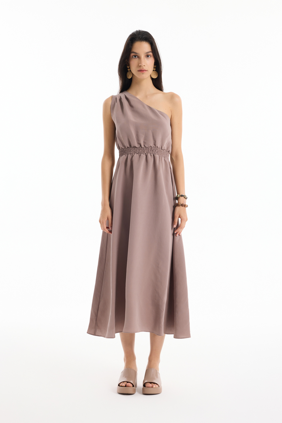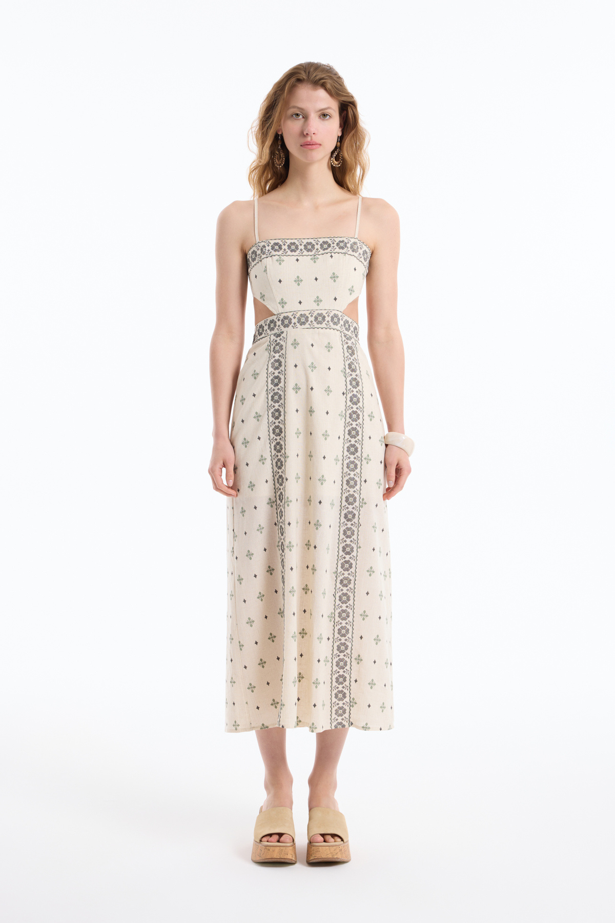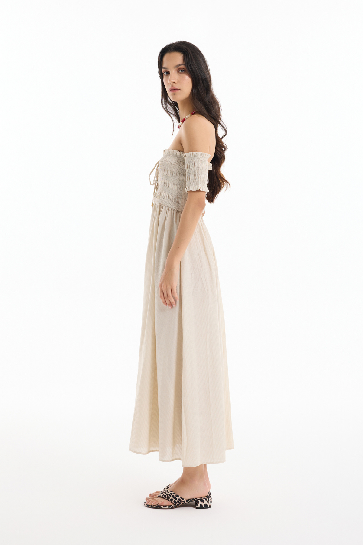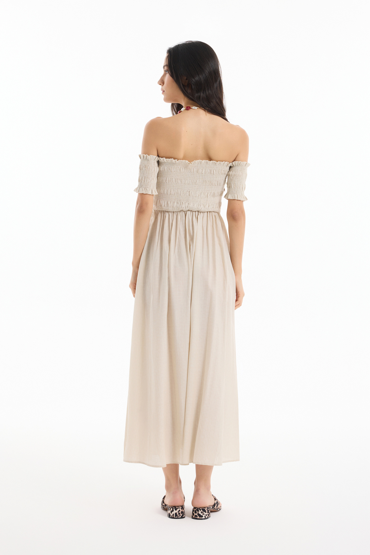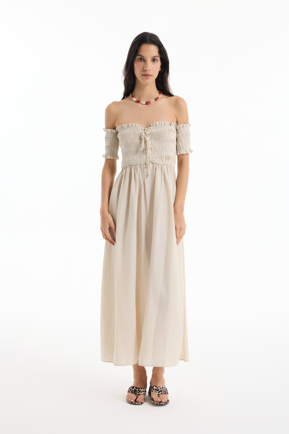 Kuş Gözü Bağlamalı Düşük Omuz Elbise Bej Kuş Gözü Bağlamalı Düşük Omuz Elbise Bej 25YELB00465 L