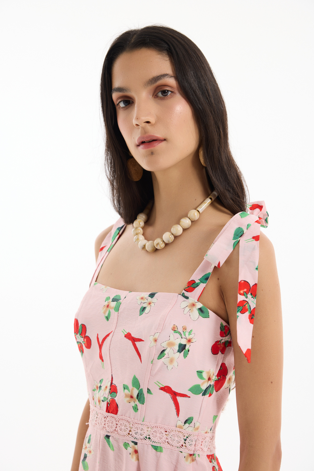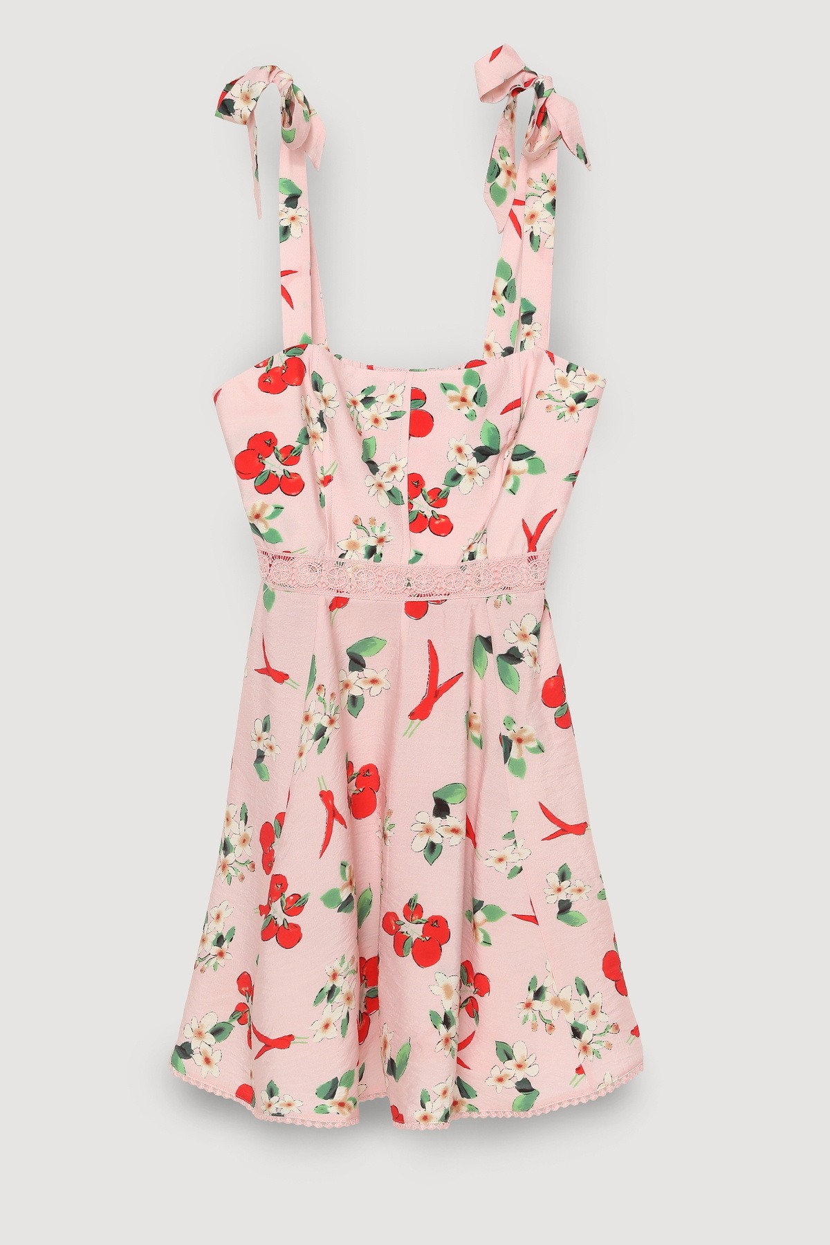 Domates Biber Desenli Askılı Mini Elbise Pembe Domates Biber Desenli Askılı Mini Elbise Pembe 25YELB00408 L