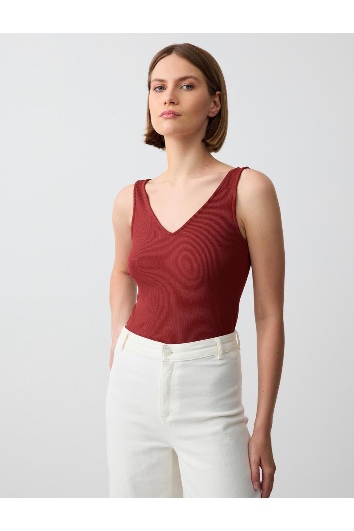 Turkuaz Dar Kesim V Yaka Örme Atlet Turkuaz Dar Kesim V Yaka Örme Atlet 5SW013870 2XL