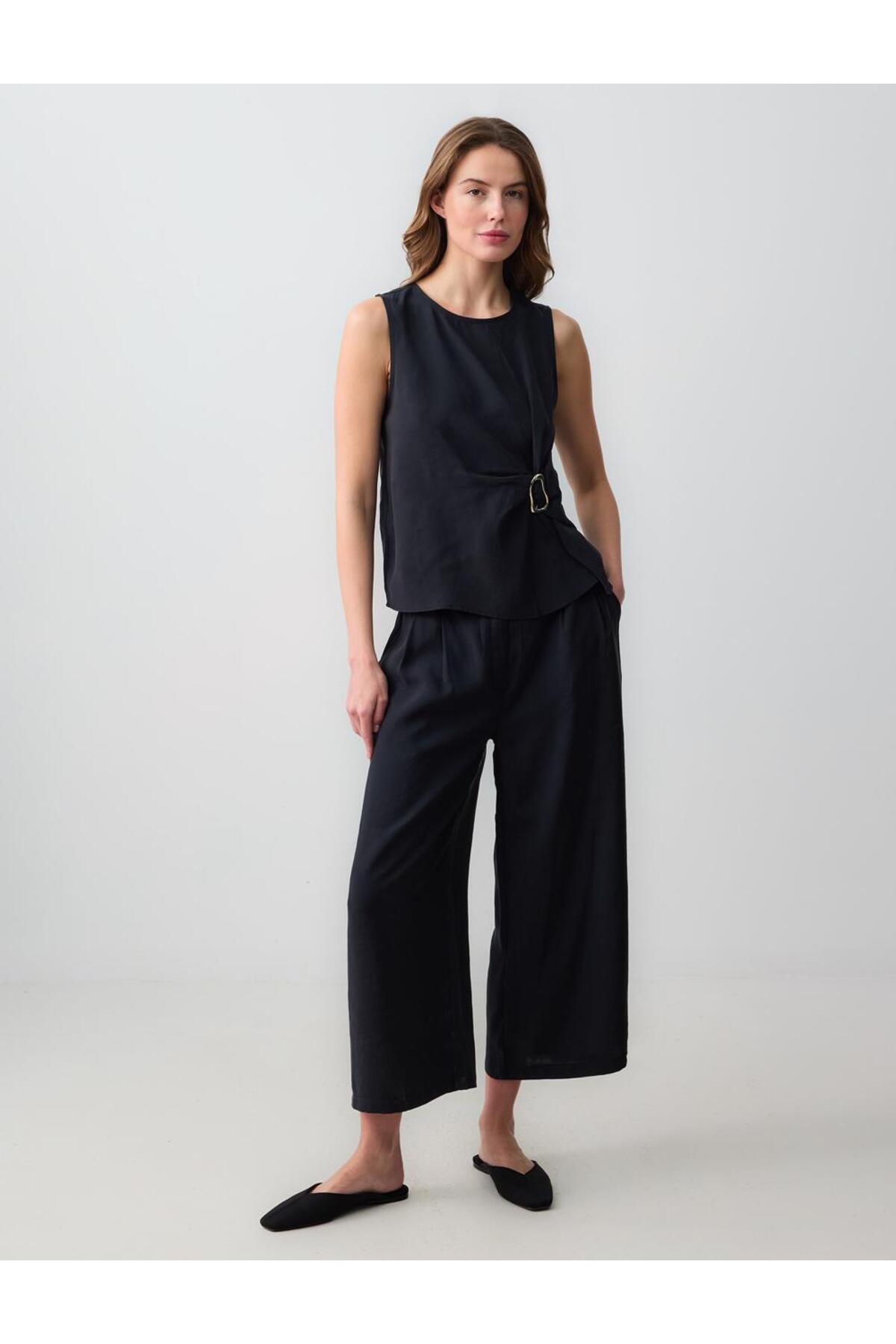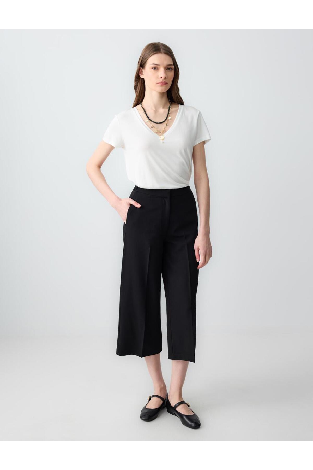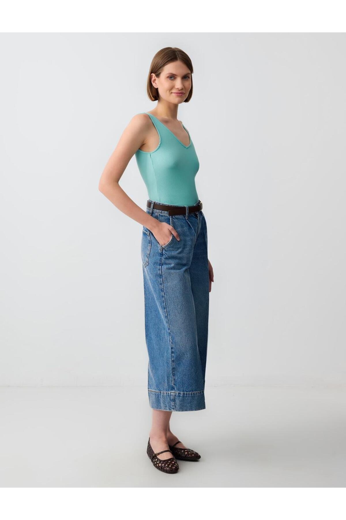 İndigo Mavi %100 Pamuk Rahat Kesim Yüksek Bel Bol Paça Denim Pantolon İndigo Mavi %100 Pamuk Rahat Kesim Yüksek Bel Bol Paça Denim Pantolon 5SW184531 42