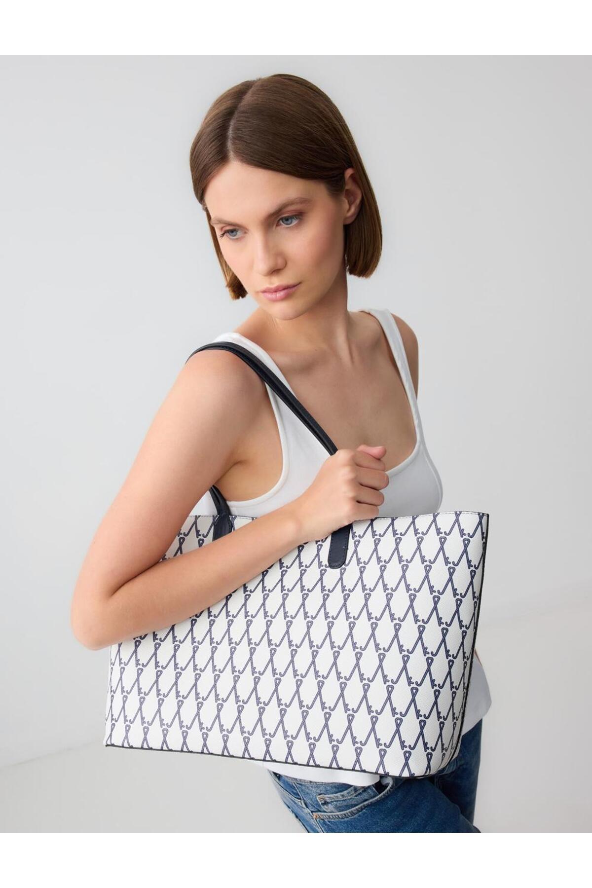 Beyaz Anahtar Desenli Omuz Çantası Beyaz Anahtar Desenli Omuz Çantası 5SW374860 تک سایز