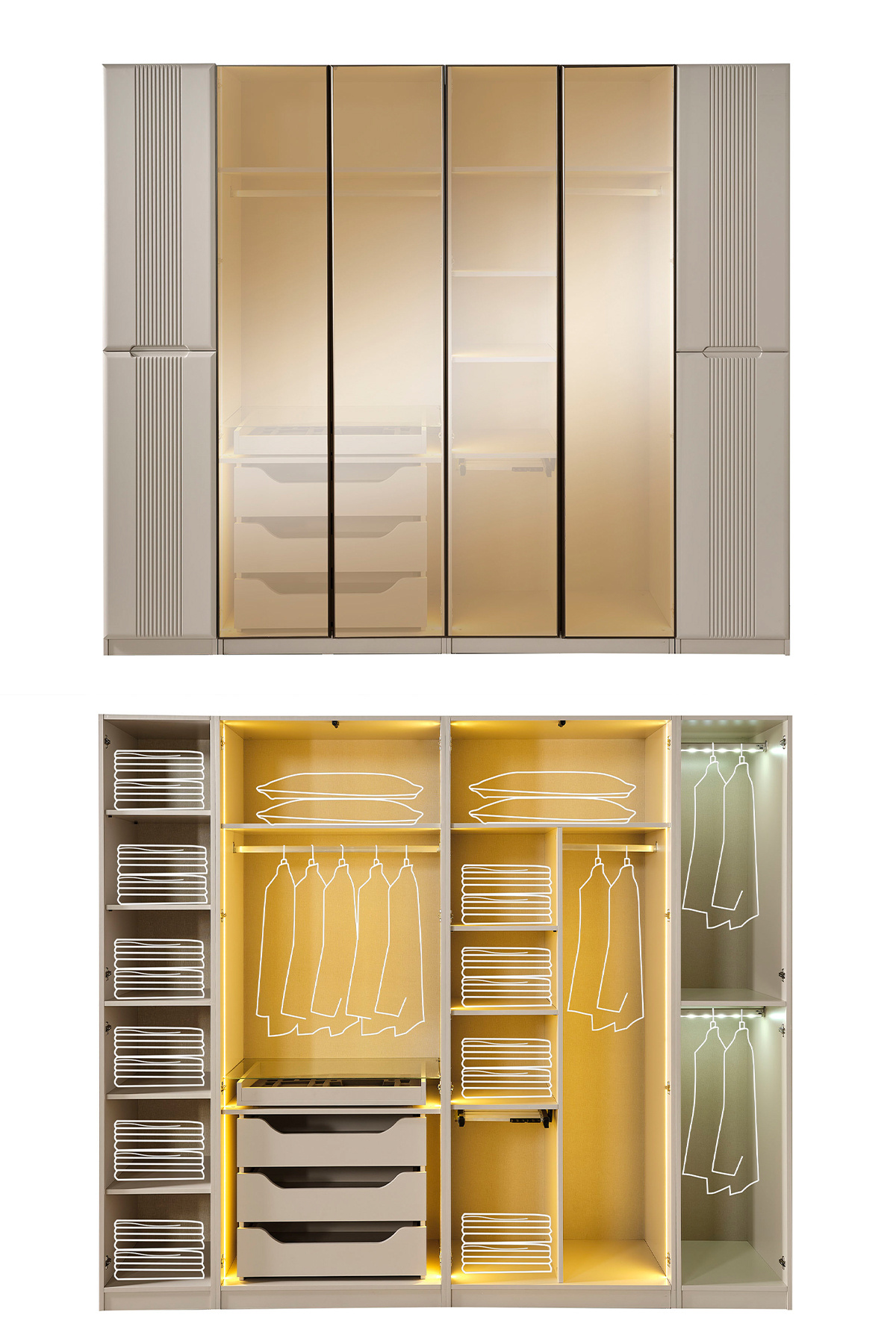 - تنظیم محتوا : Bazalı Karyola + 2 Komodin + Şifonyer + Gardırop
